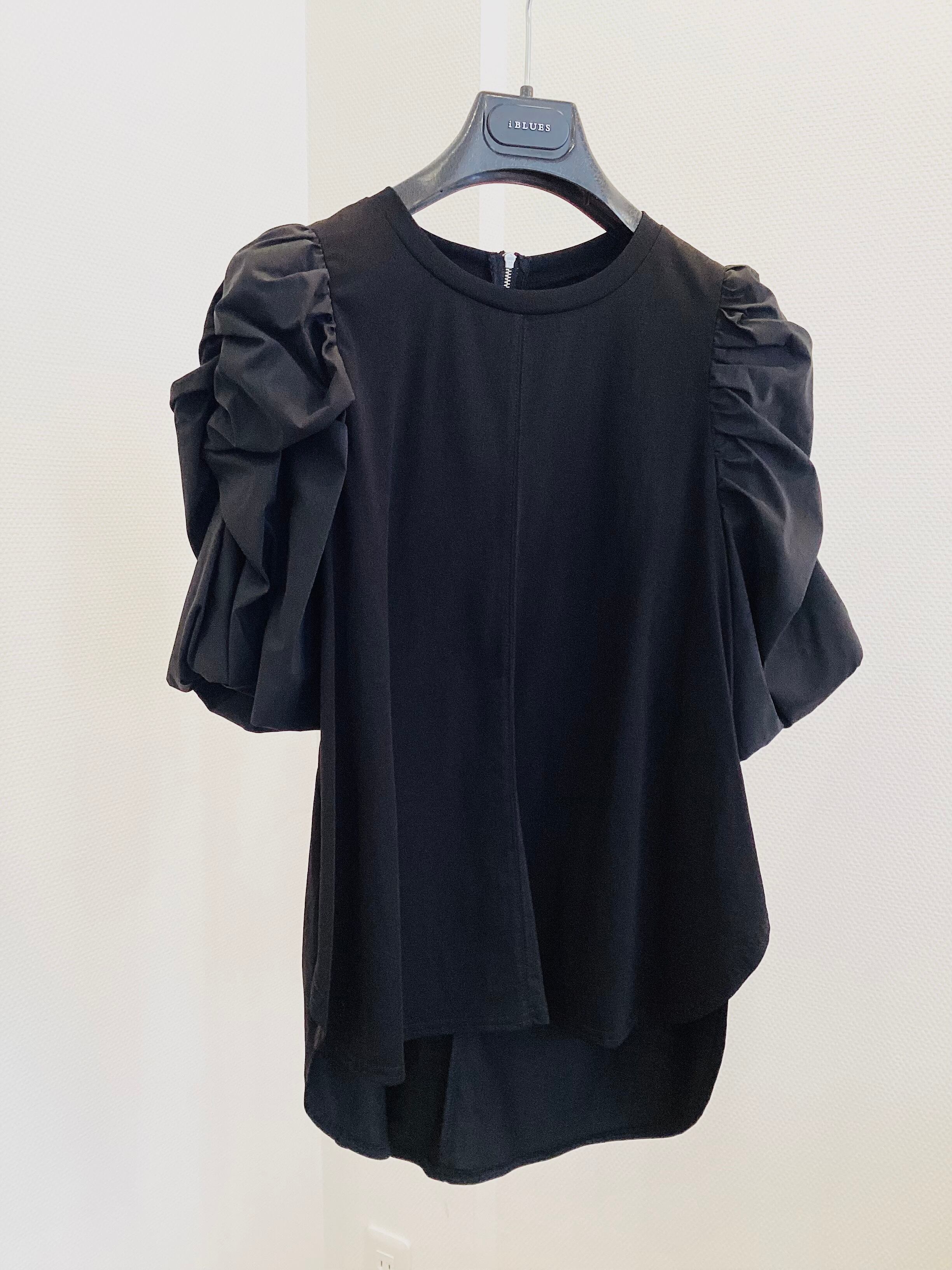 5分袖の袖丈と身頃カット地がポイントのアイテム♪