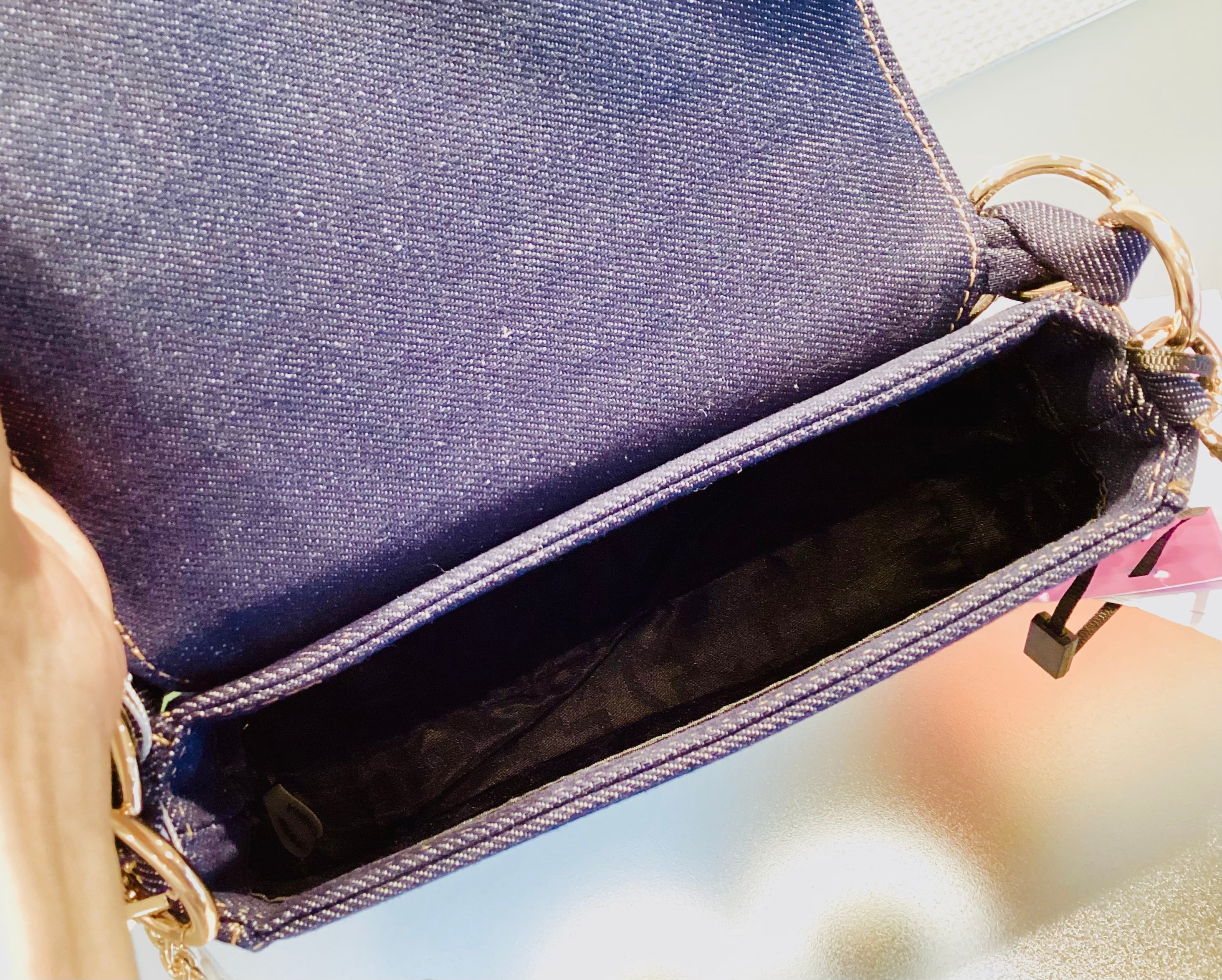 艶やかなゴールドチェーンとデニム素材の組み合わせが