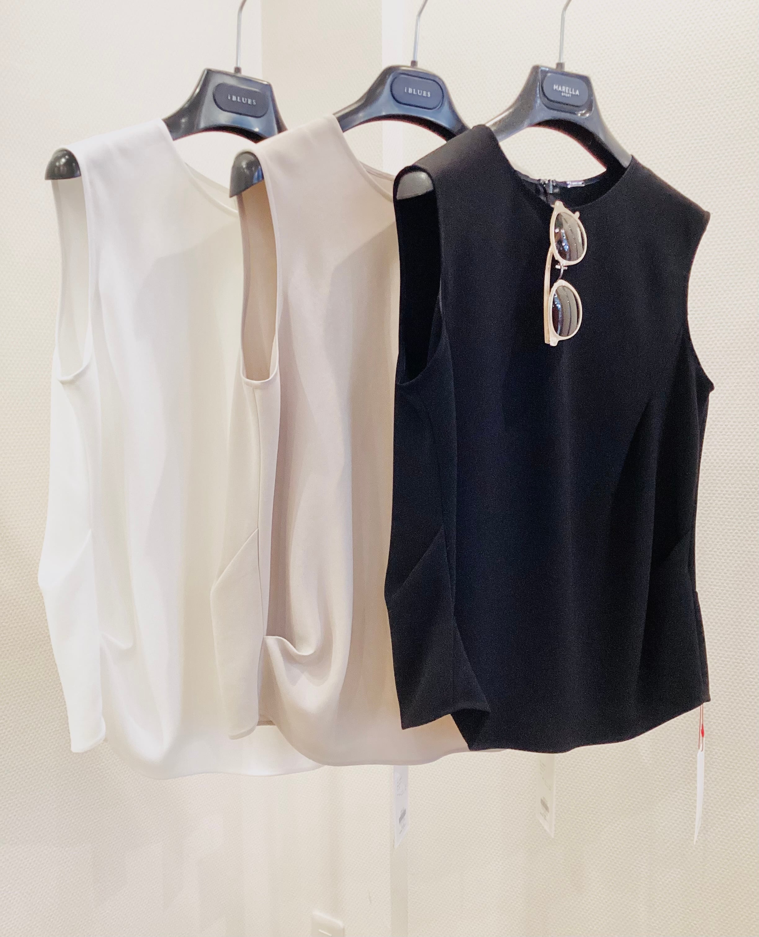 すっきりとしたノースリーブデザインが、品のある大人の装いを引き立てます。