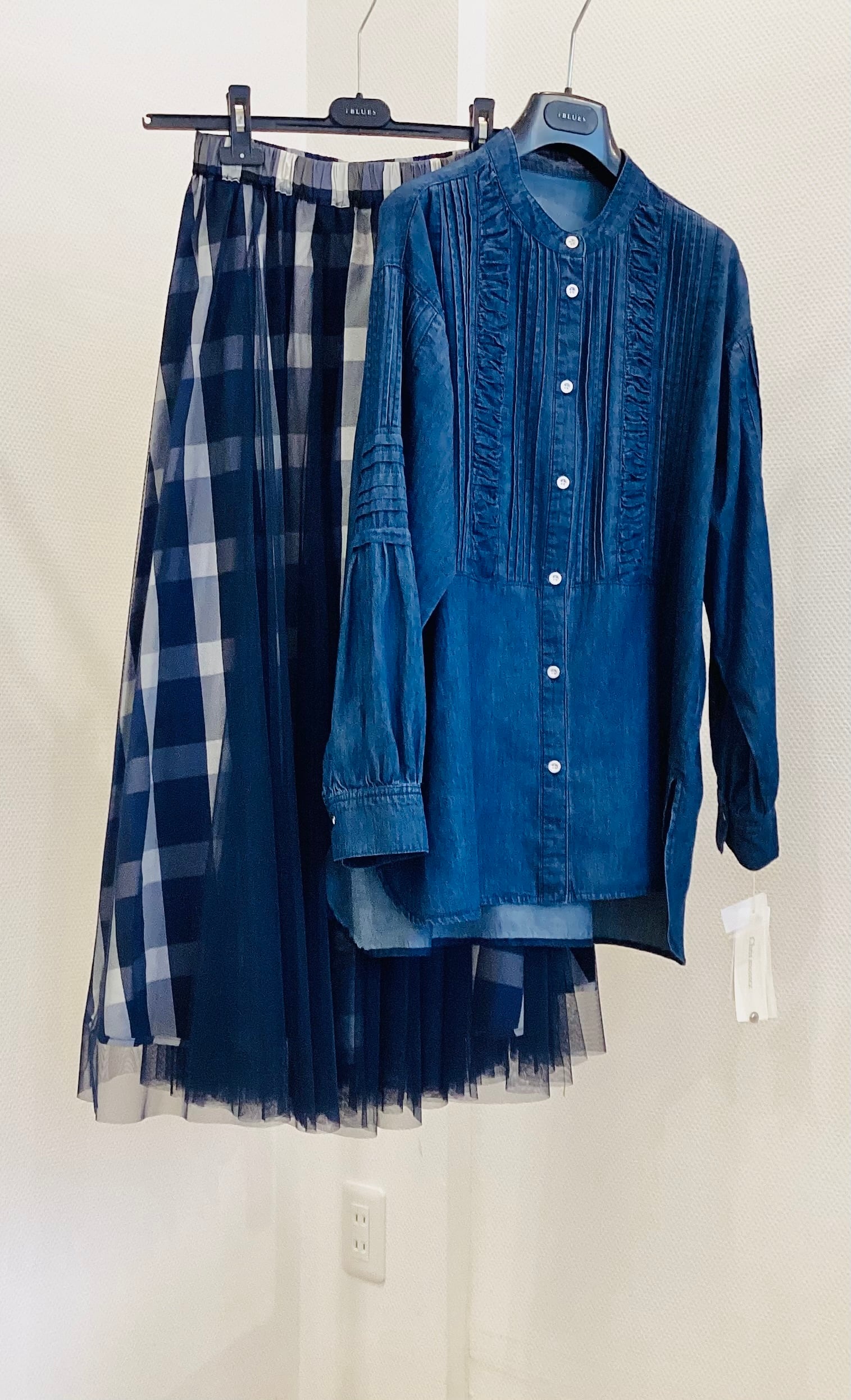 繊細なピンタックデザインが印象的な、デニム染めブラウス♪