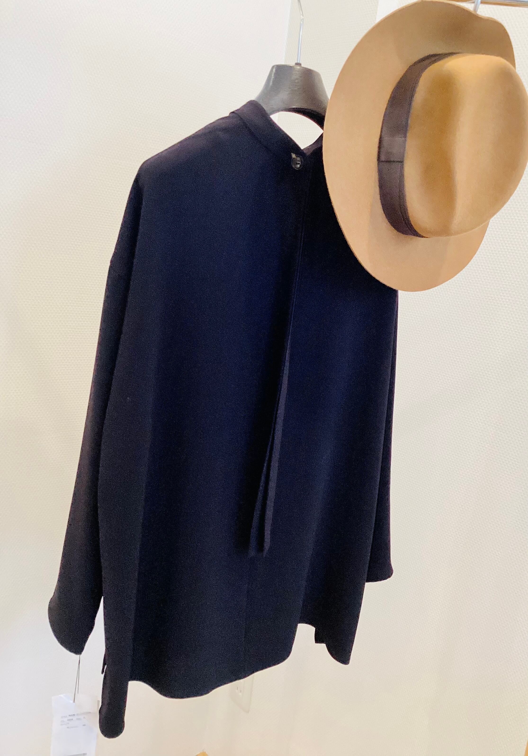 なめらかなジョーゼット素材が、動くたびに美しいドレープを作り出すブラウスです♪