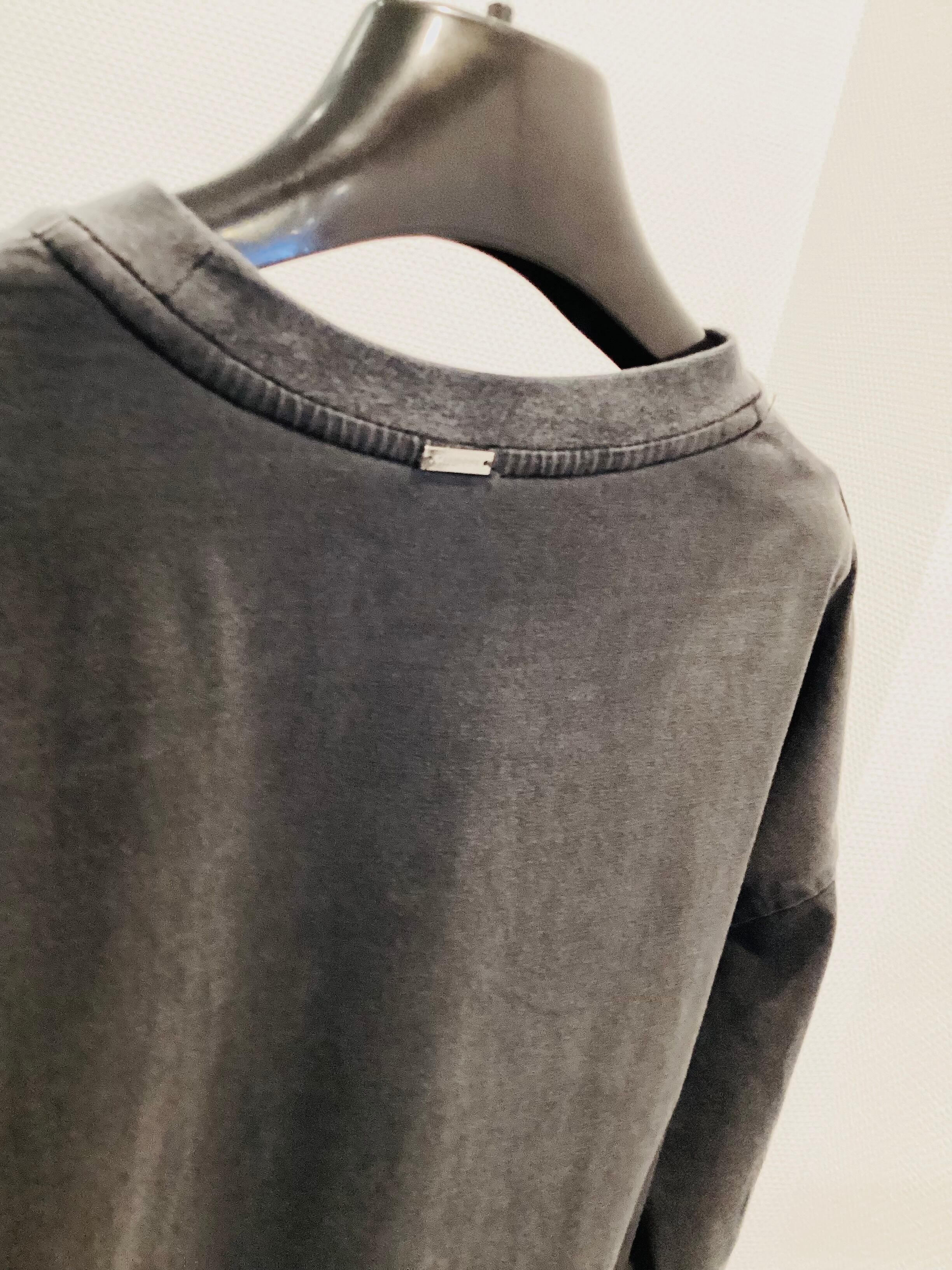 ネックラインの後ろに配されたメタルプレートや、洗いざらしたようなヴィンテージ加工が、