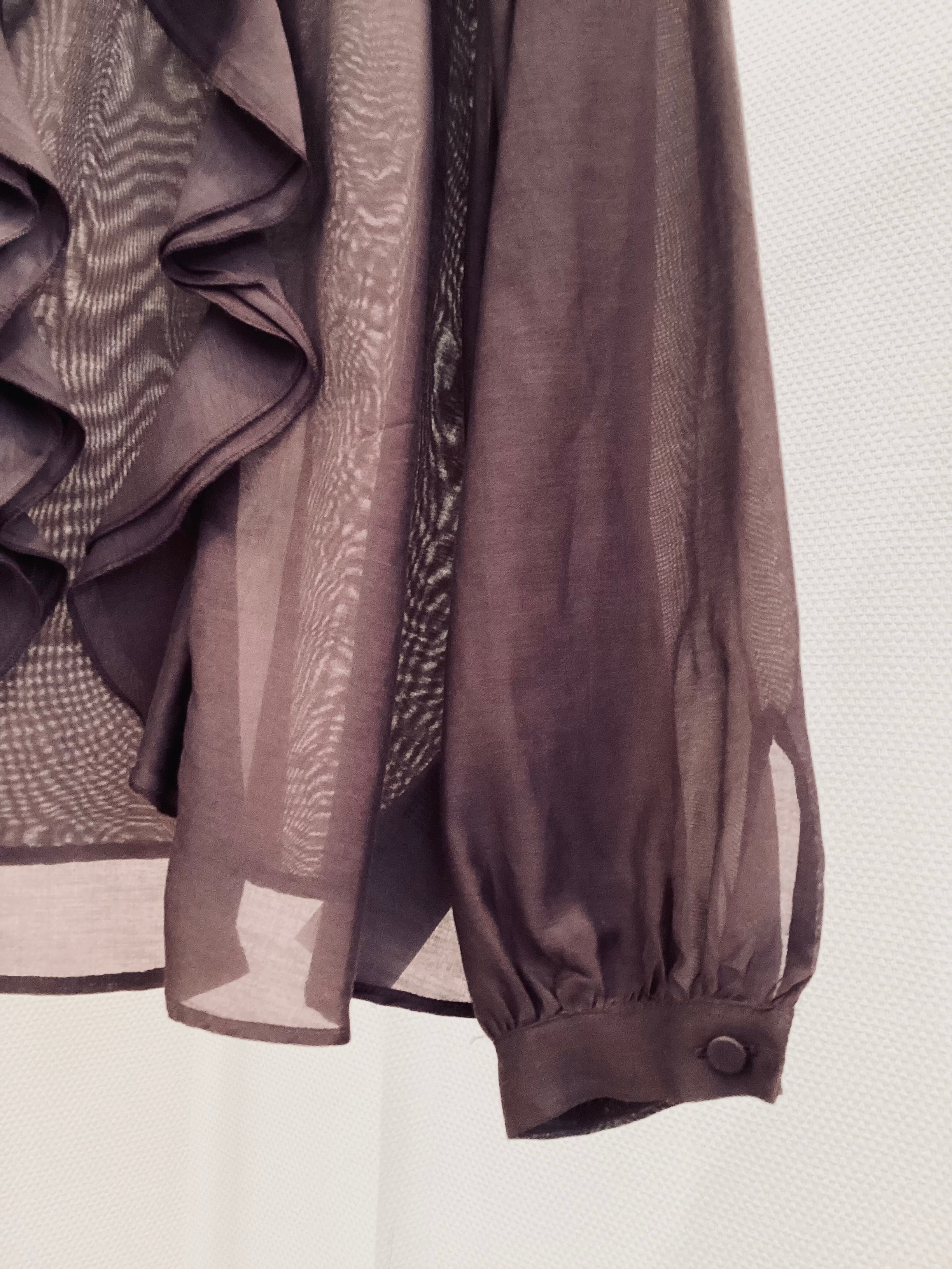 程よい艶とドラマティックなフリル、一枚で格別のエレガンスを叶える、主役級ブラウス♪