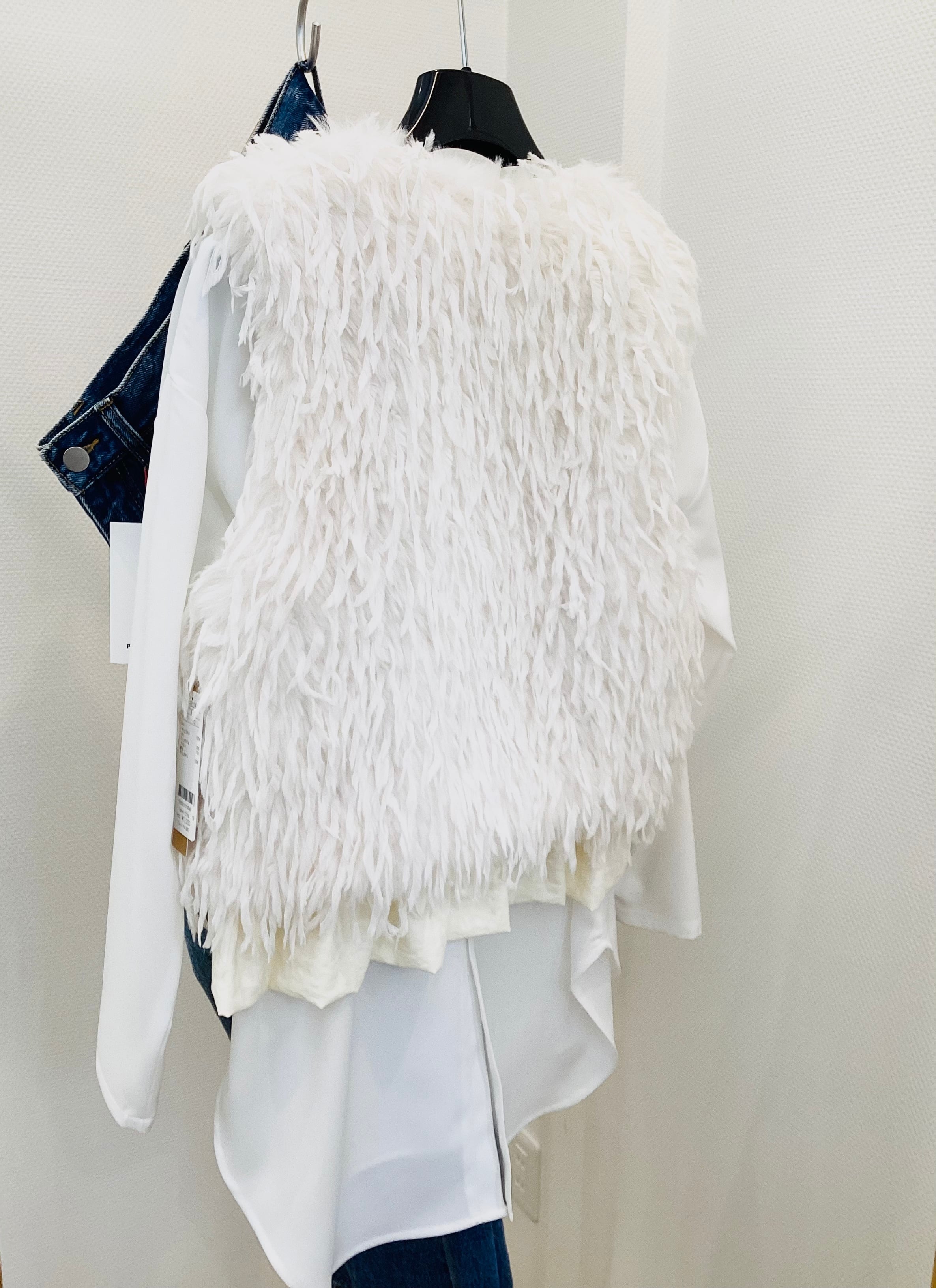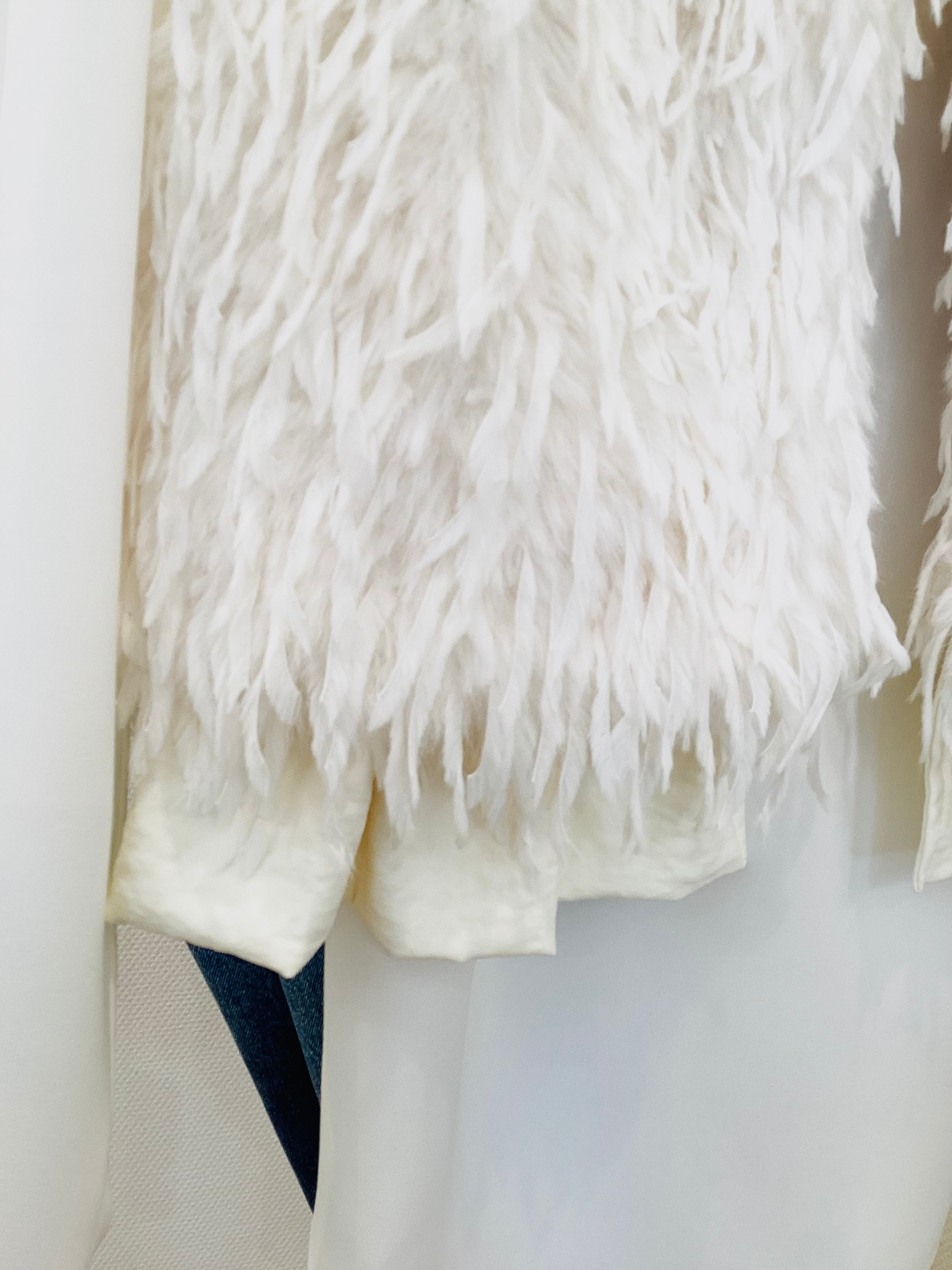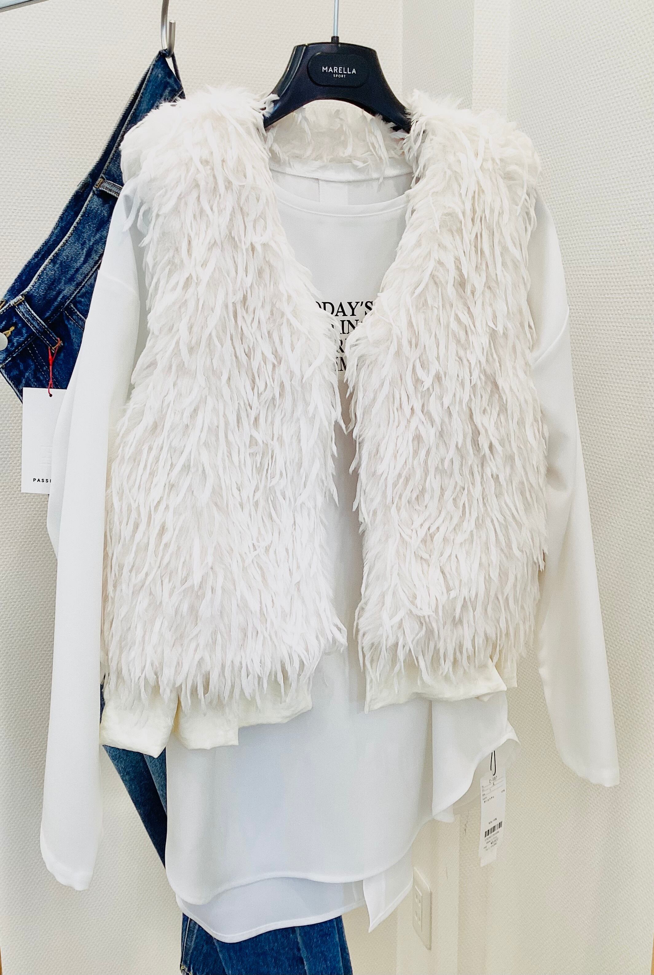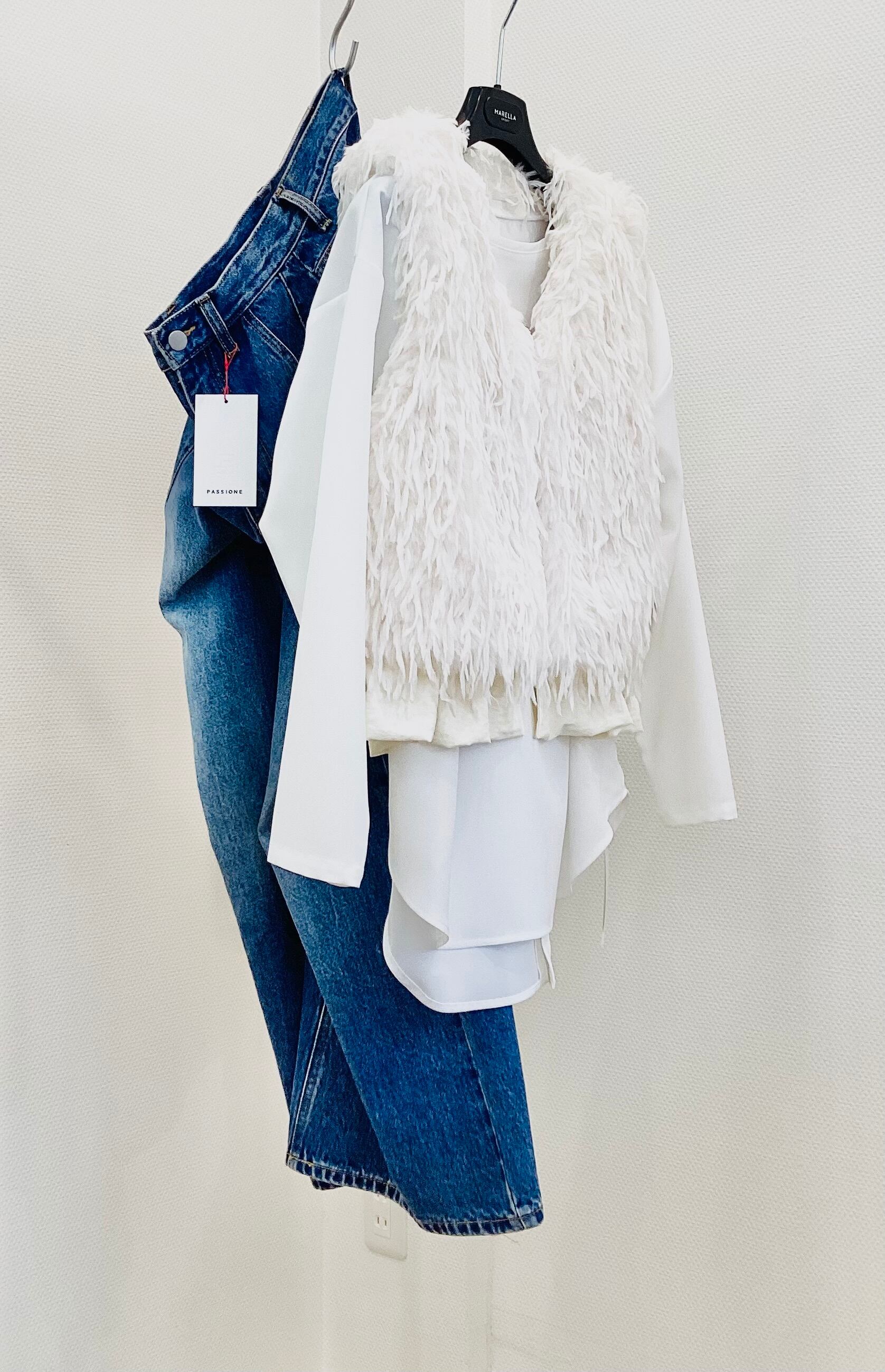ふわふわフェザーとフリルのコンビが魅せる、冬のレイヤード主役ベスト♪