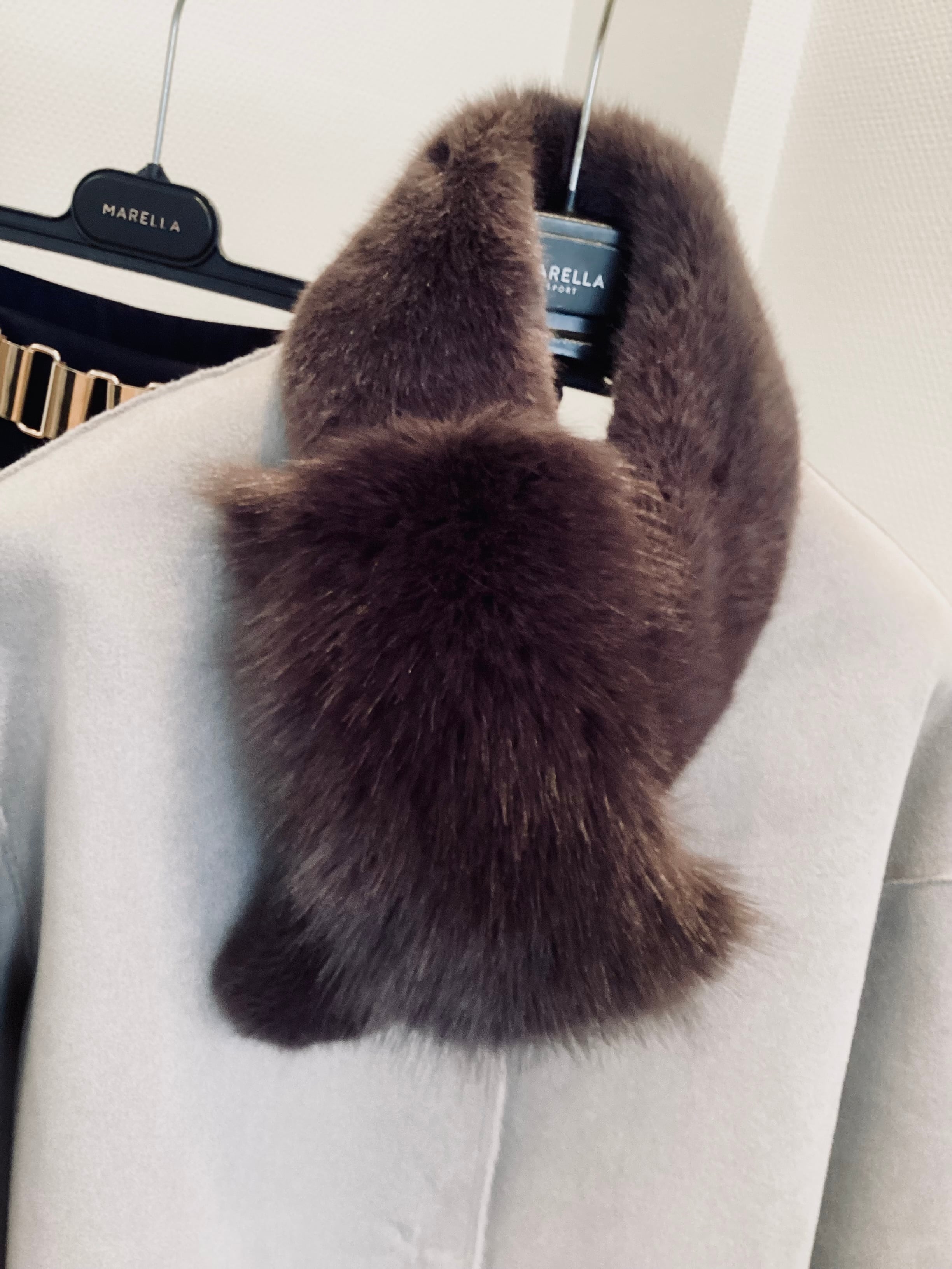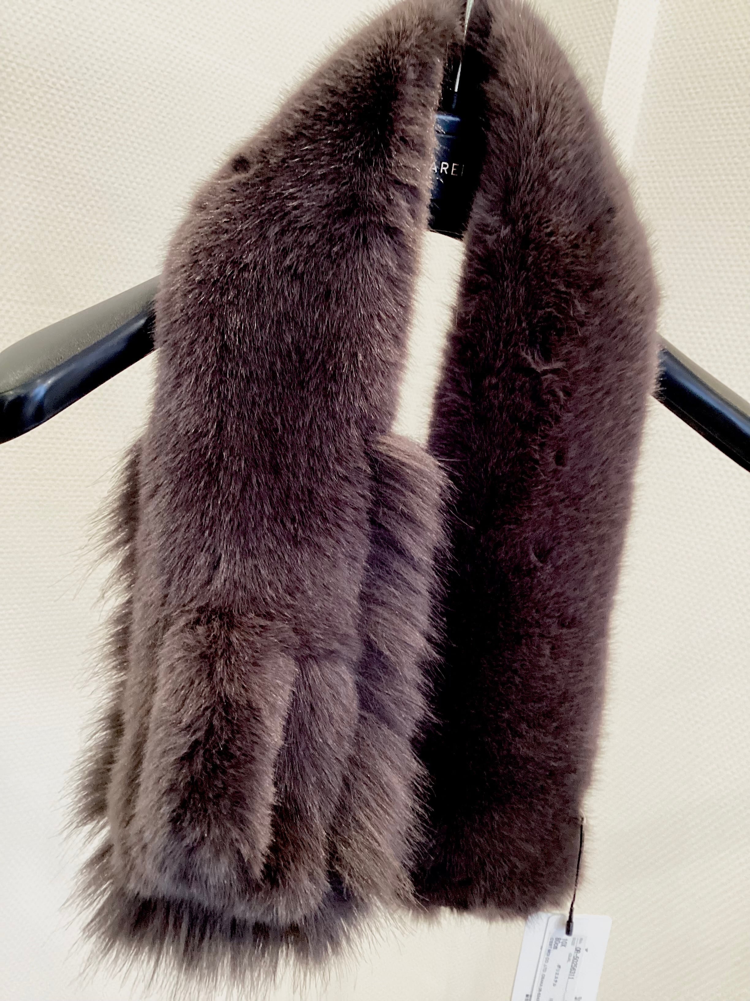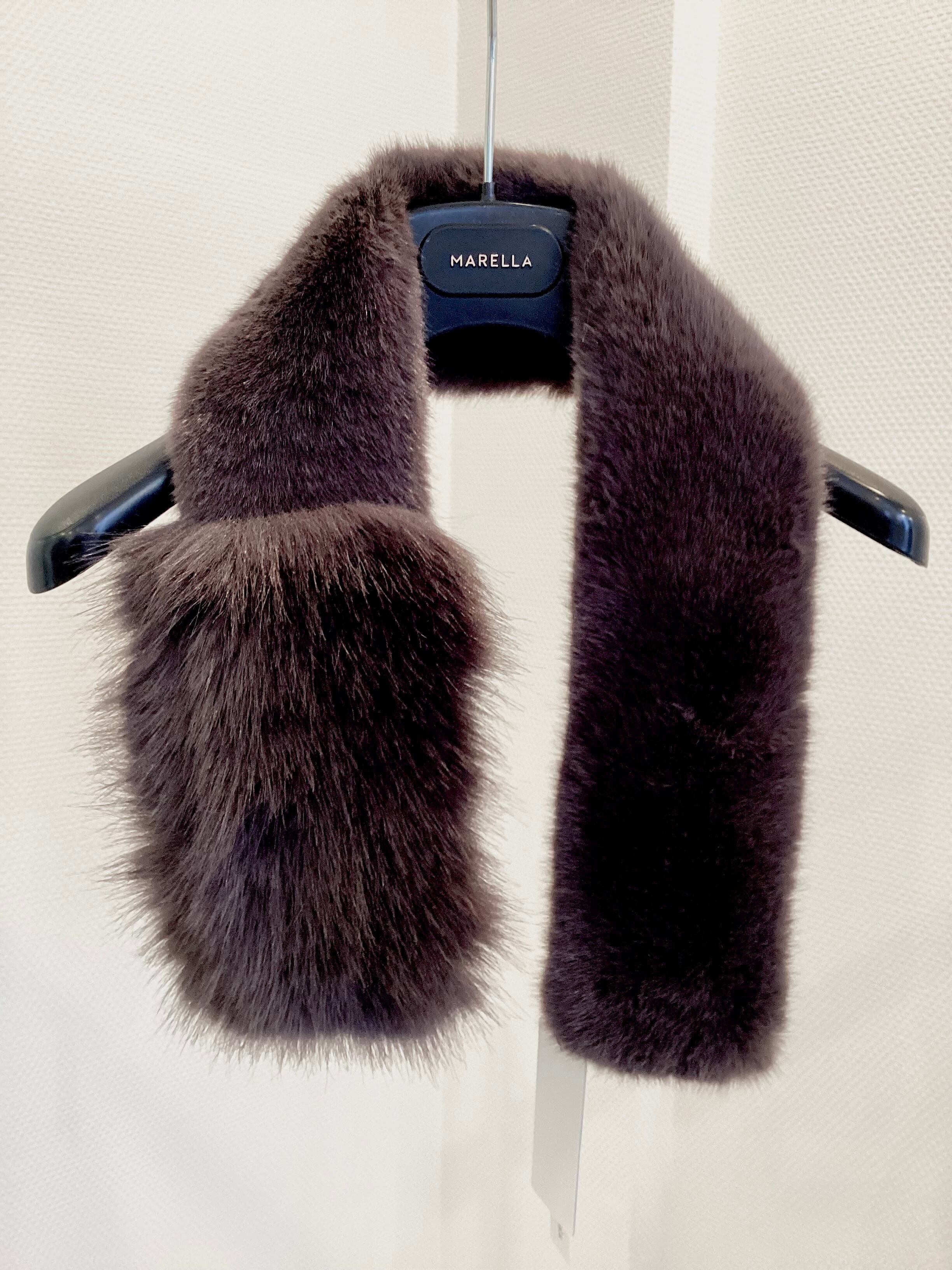 マフラーほど大袈裟にならず、首元をコンパクトに包み込むティペット丈。