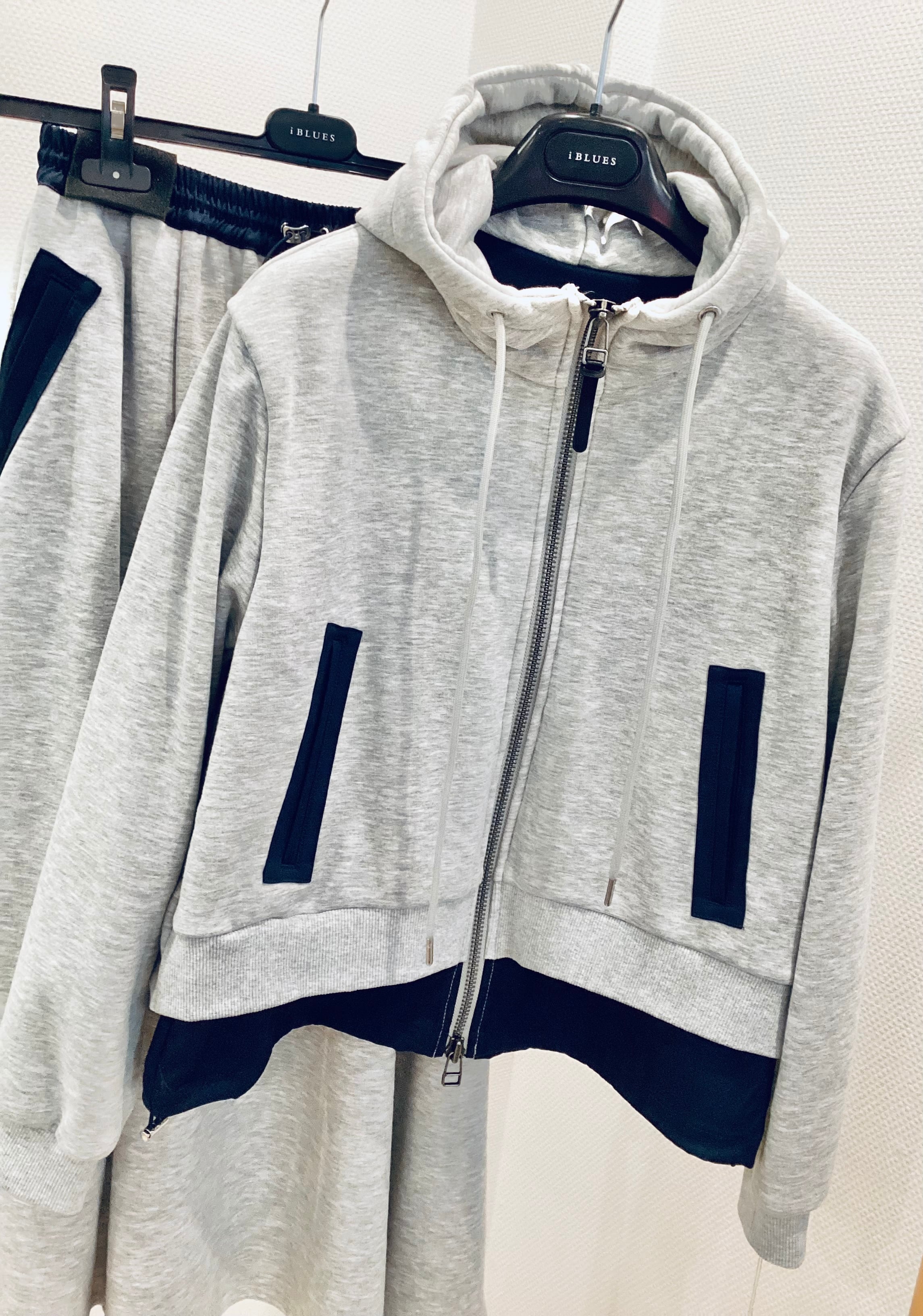 同素材・同デザインのボトムスと合わせれば、即座に旬のワンマイルコーデ。