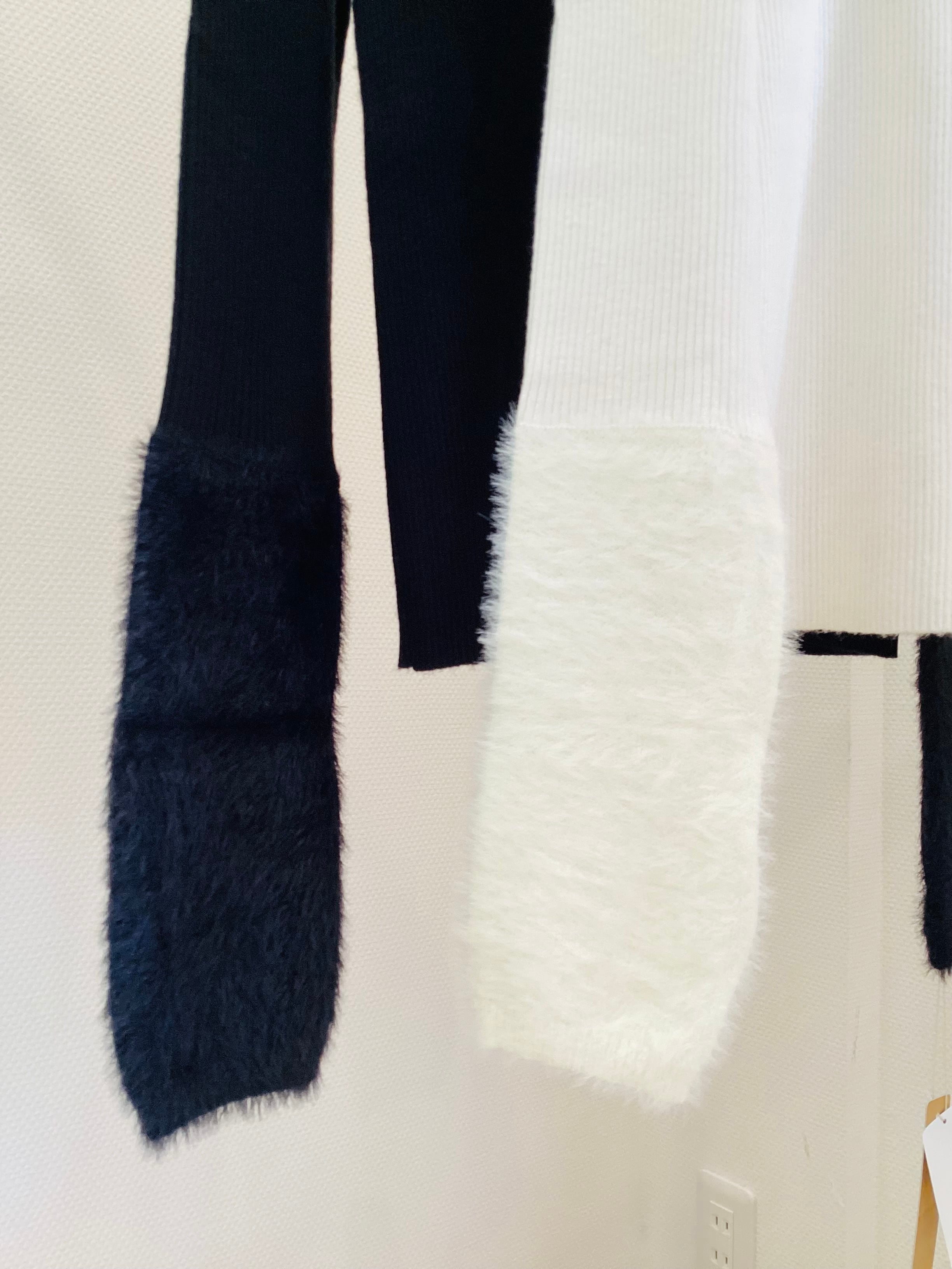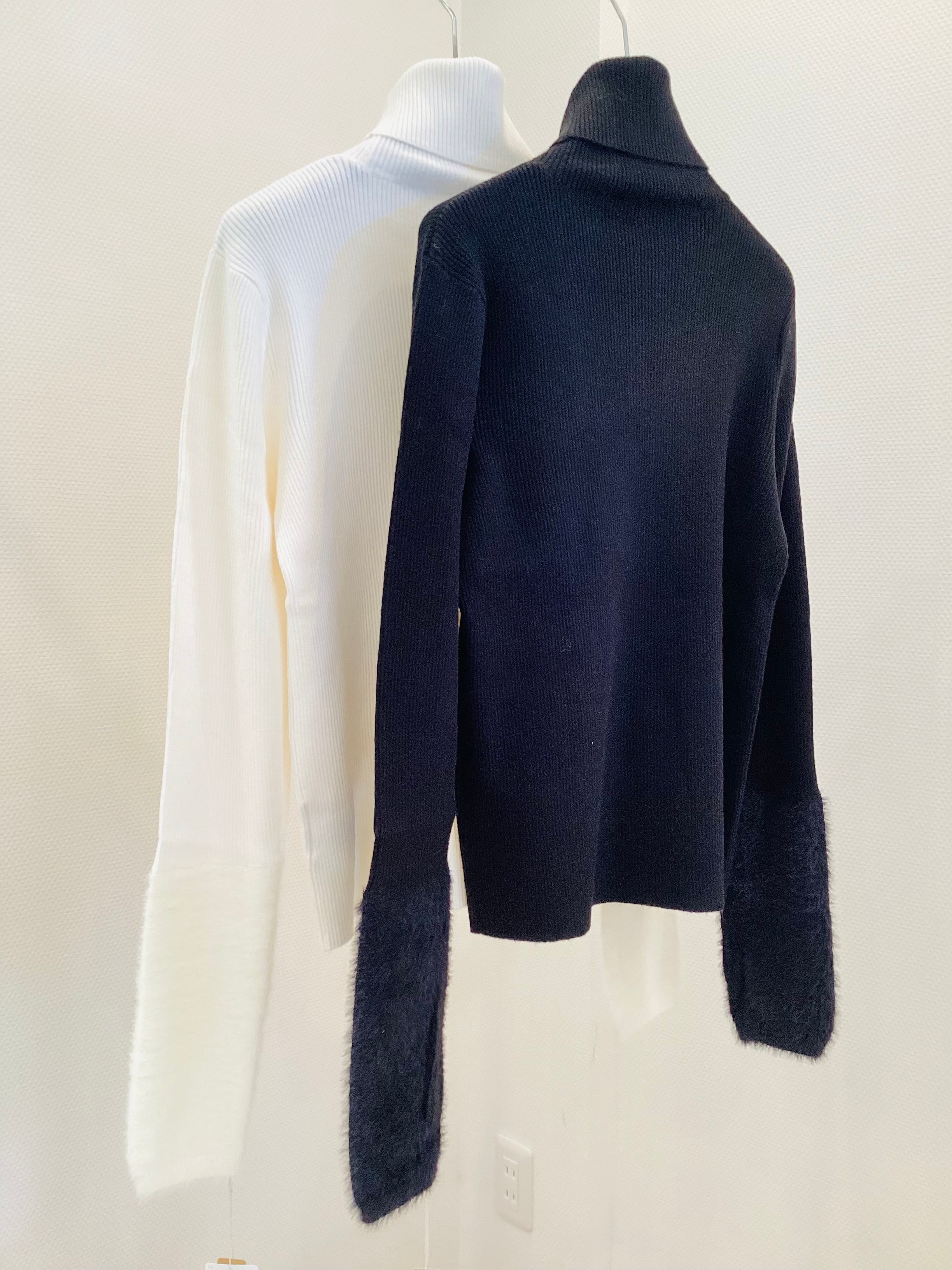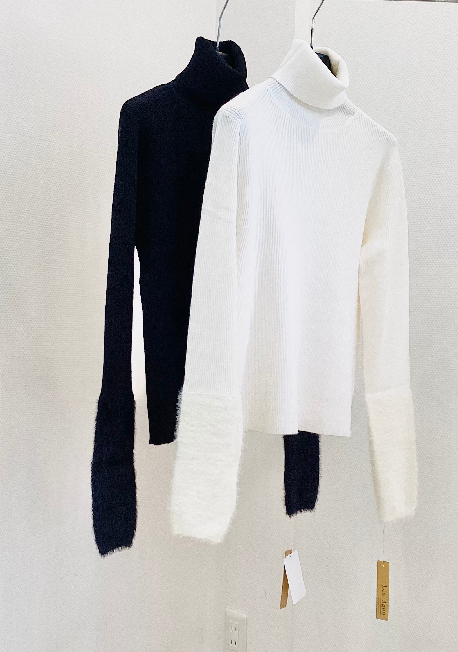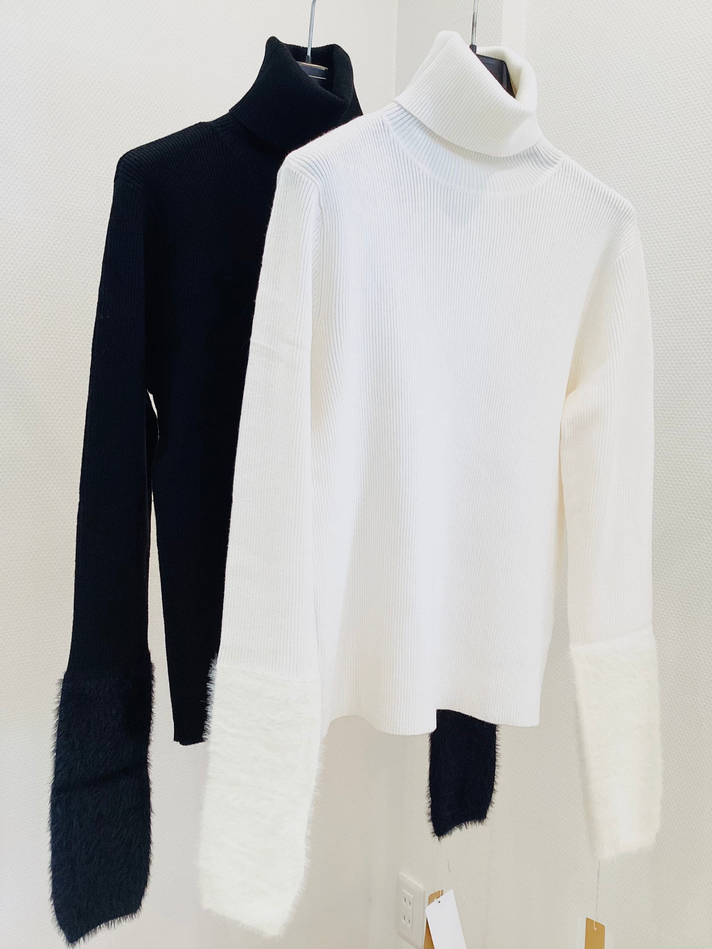 モードなファーと指抜きデザインで、いつものタートルニットを格上げ♪