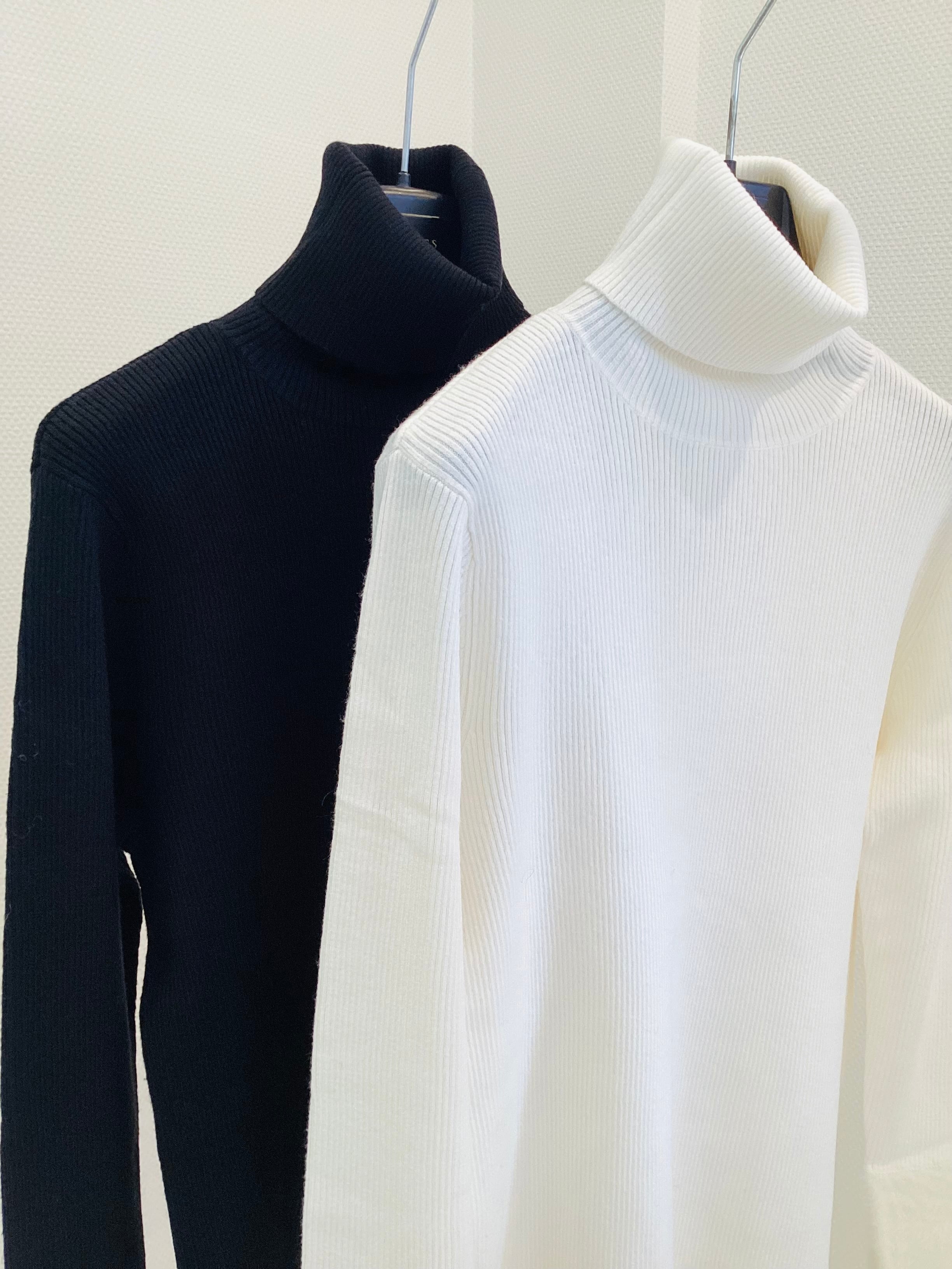 首元までしっかり暖かいタートルネックは、冬のレイヤードスタイルに欠かせません。