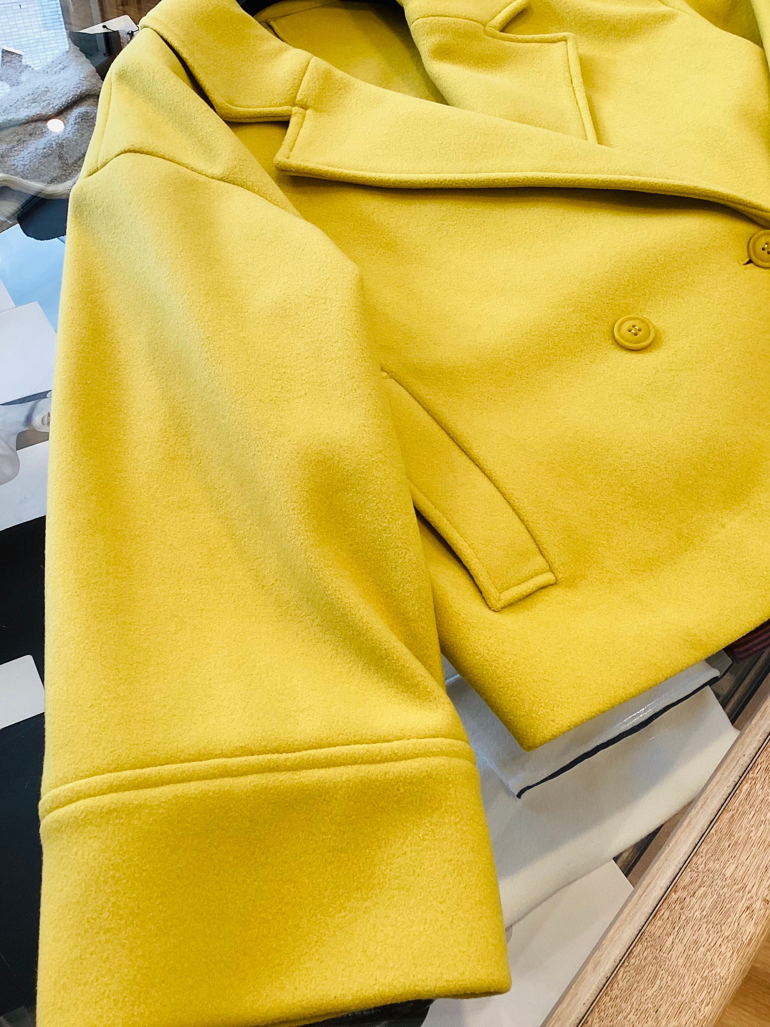 アウターとしての暖かさも兼ね備え、冬の装いにアクセントを加える一枚ですよ^_−☆