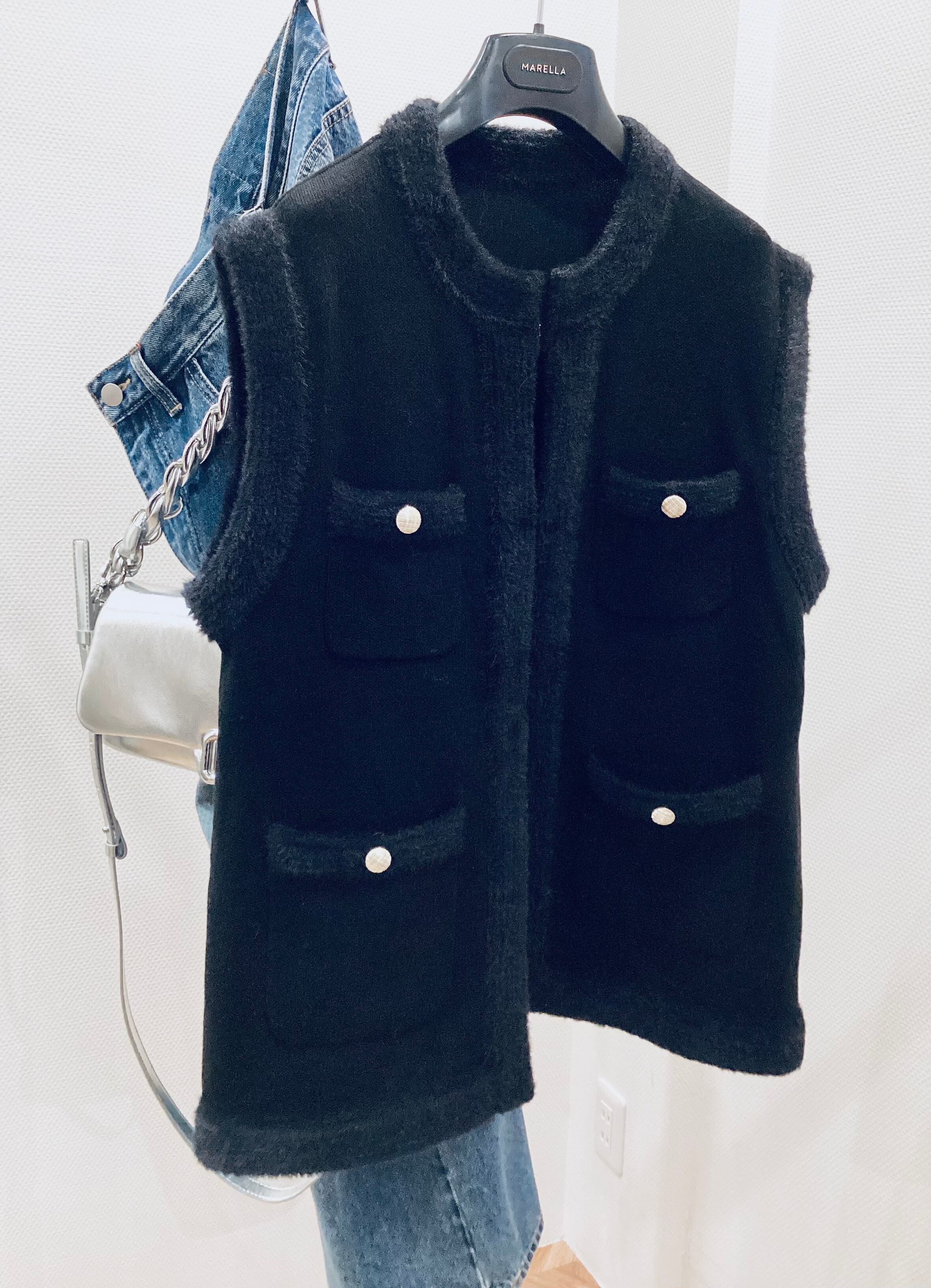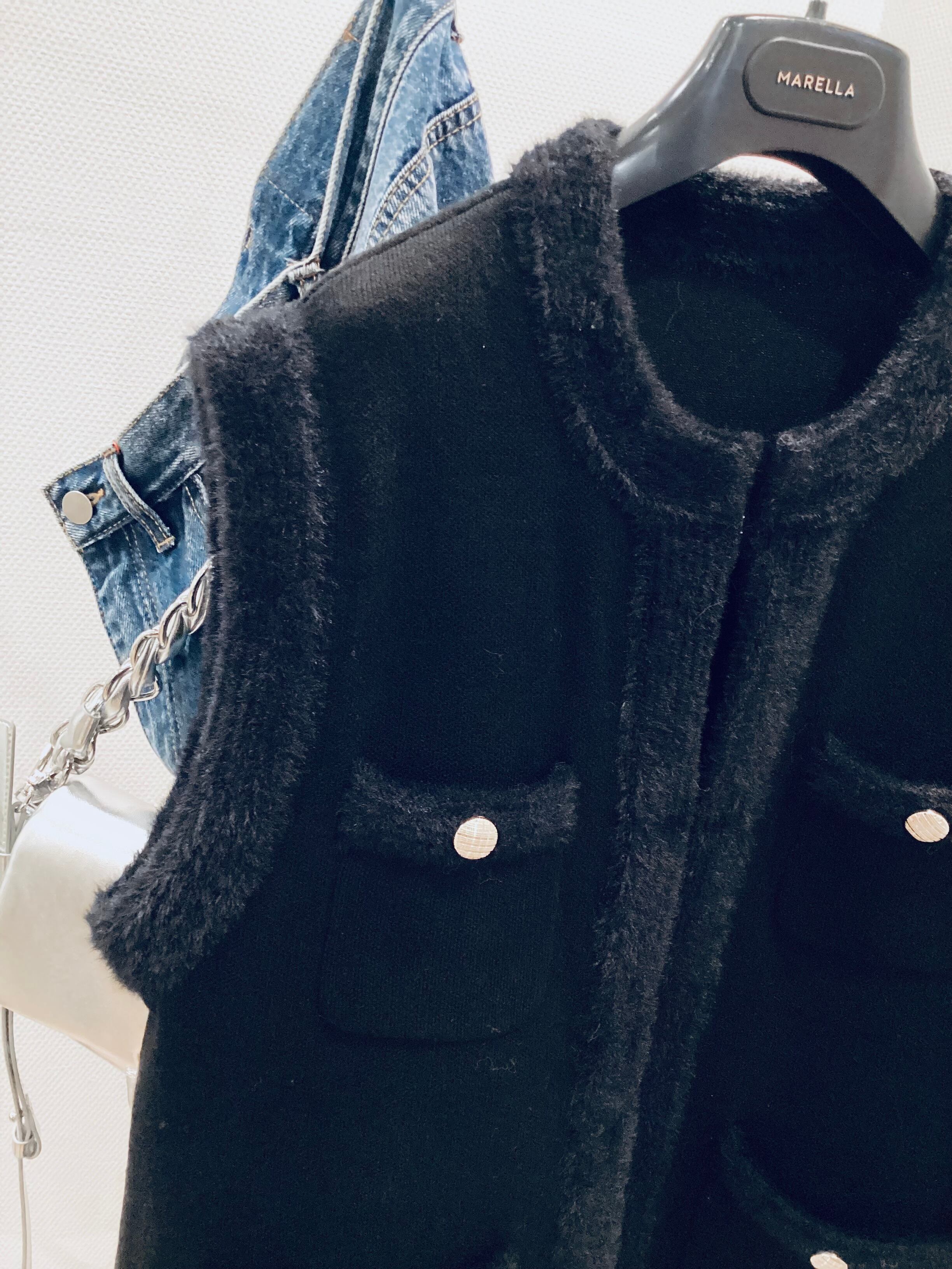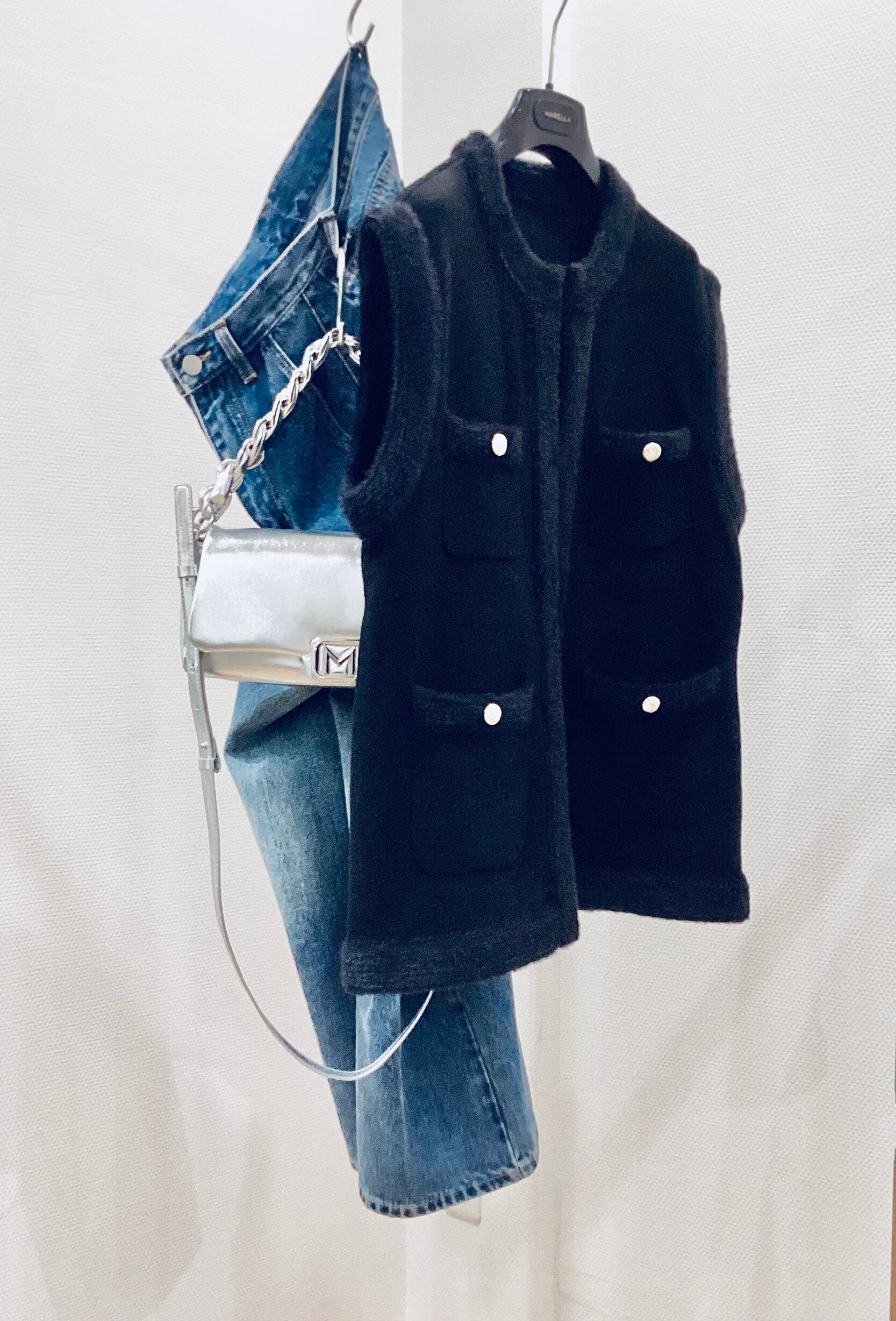 トレンドの素材使いで格上げする、大人のレイヤードベスト‼︎