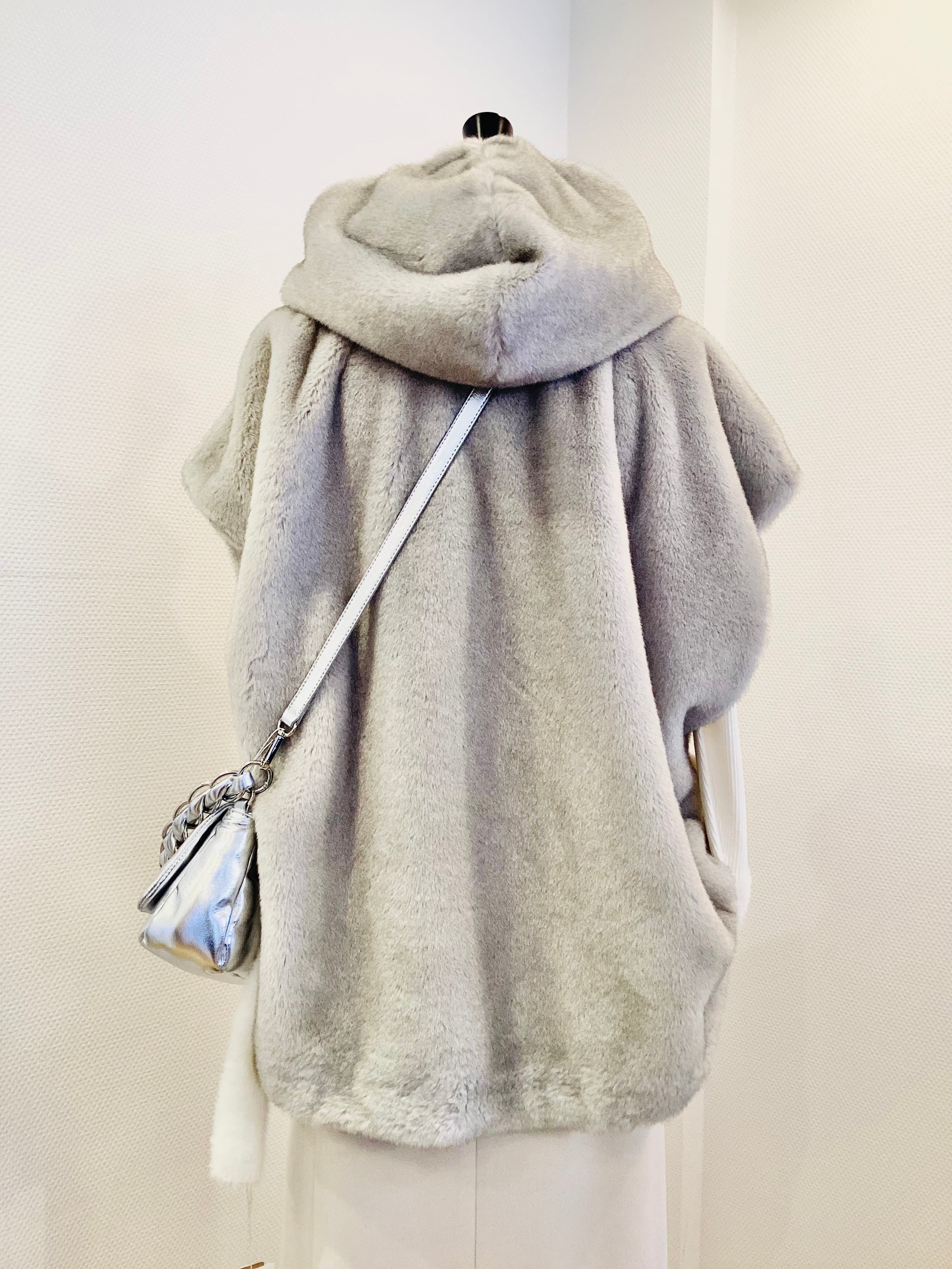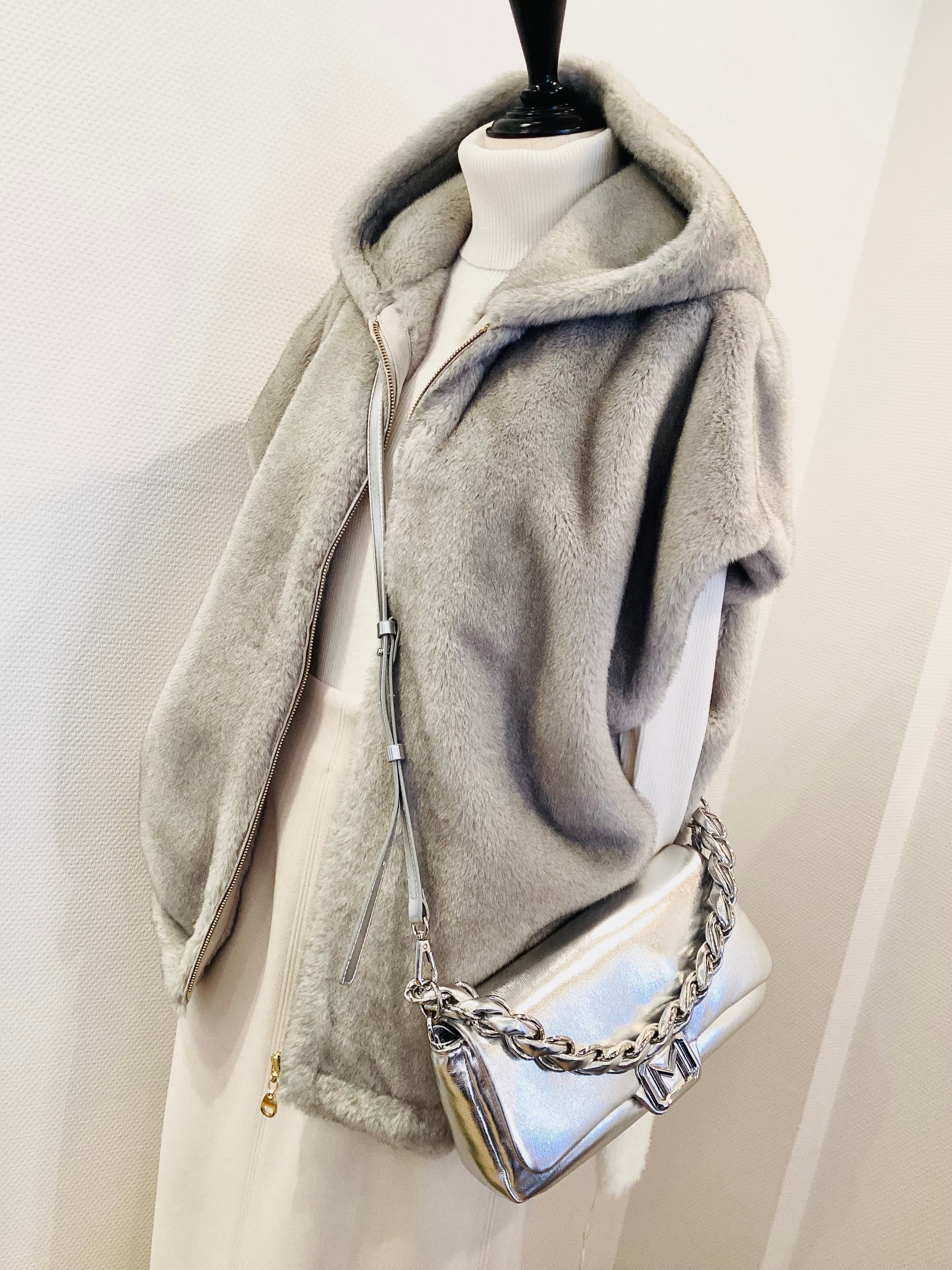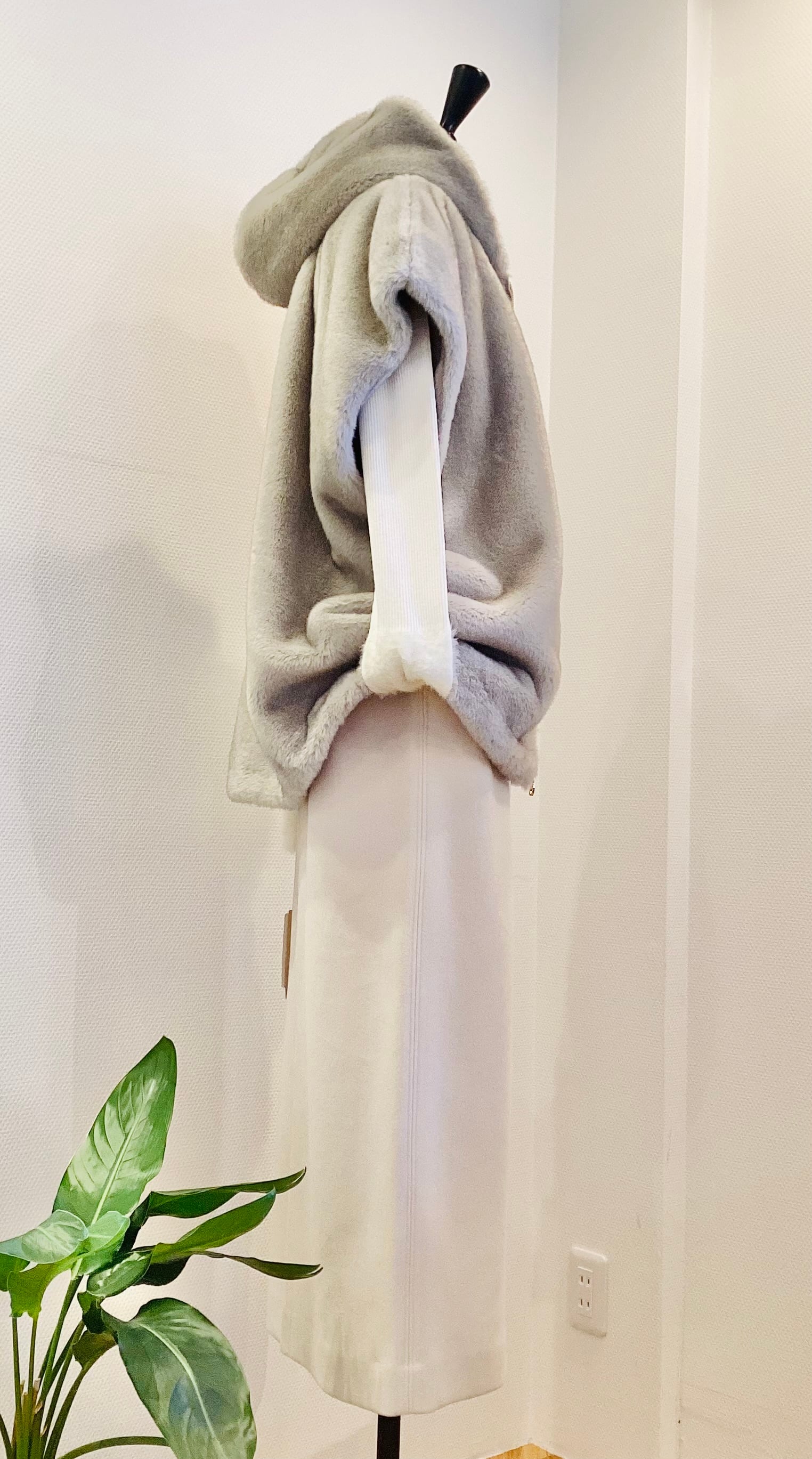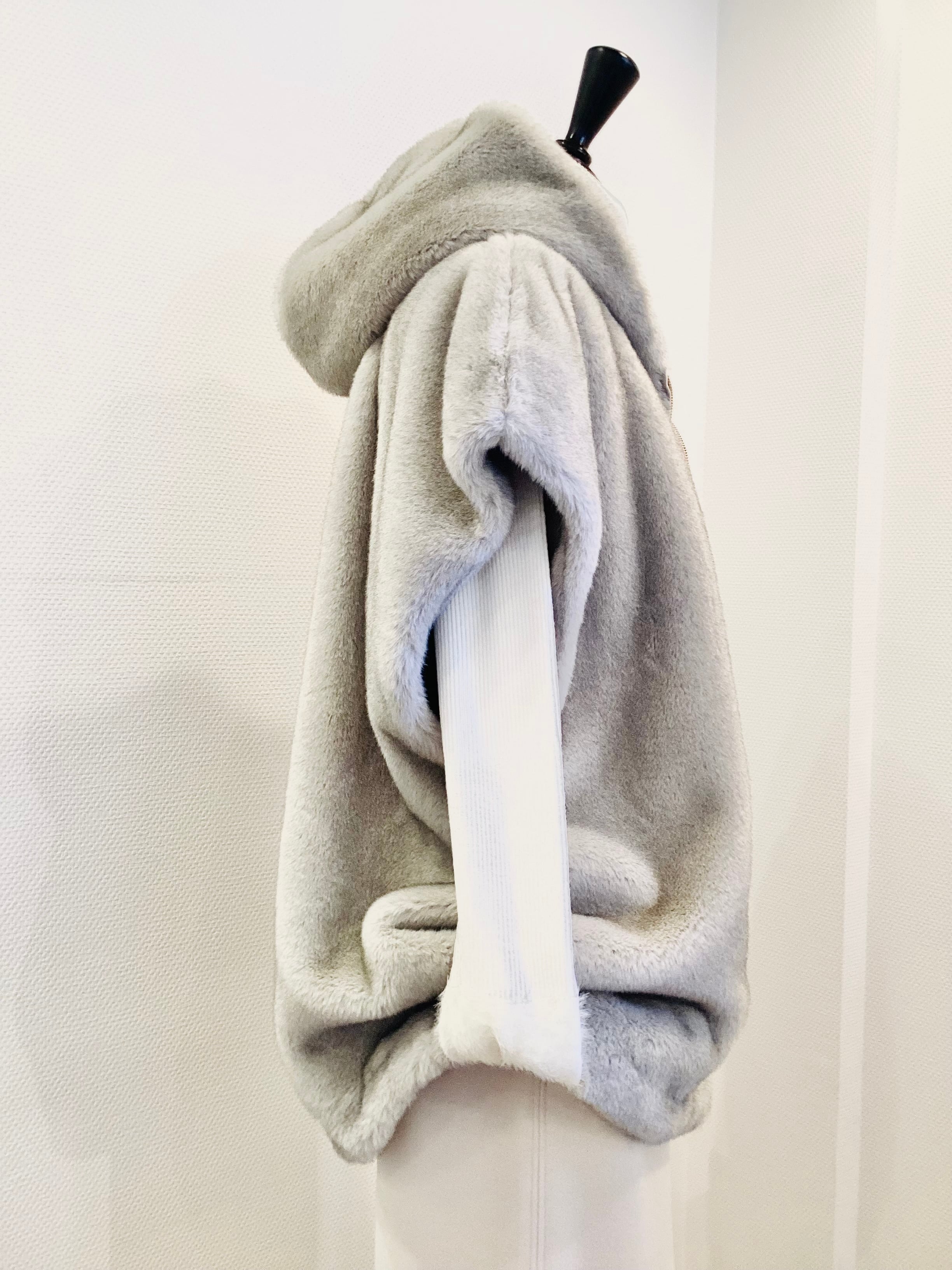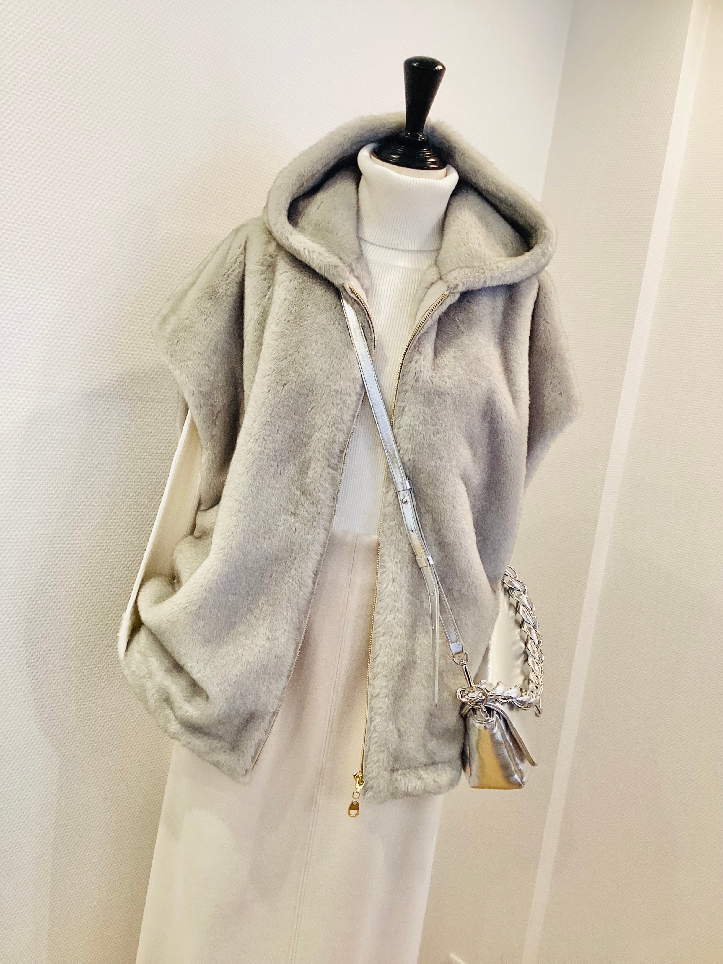 思わず触りたくなるリッチなエコファーを使用したトレンドのフーディベスト♪