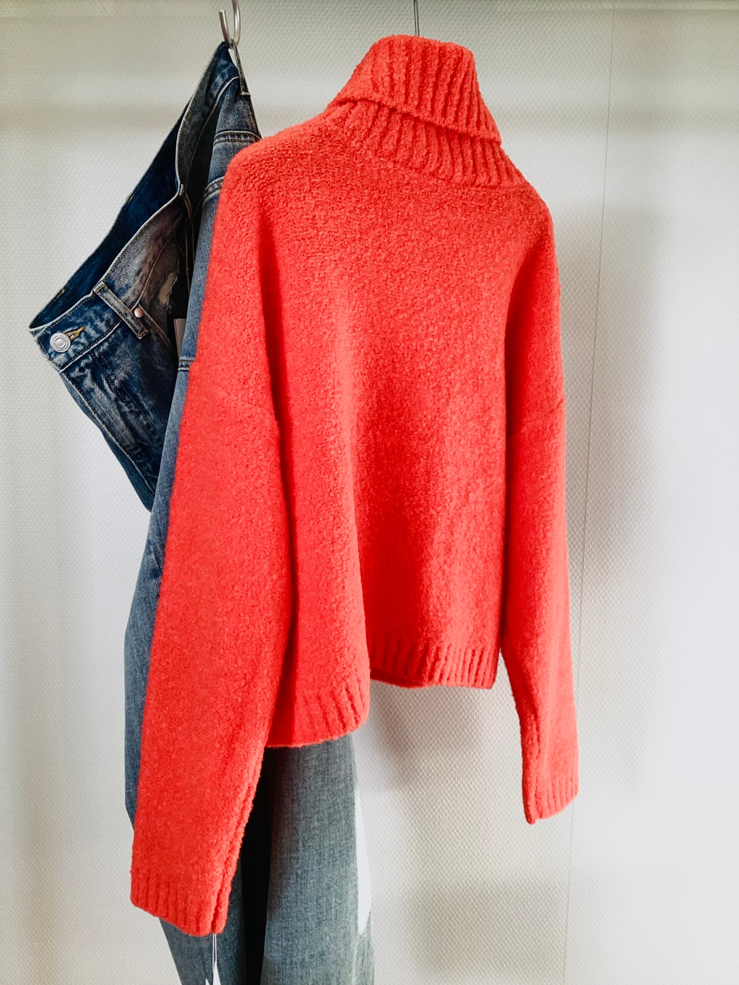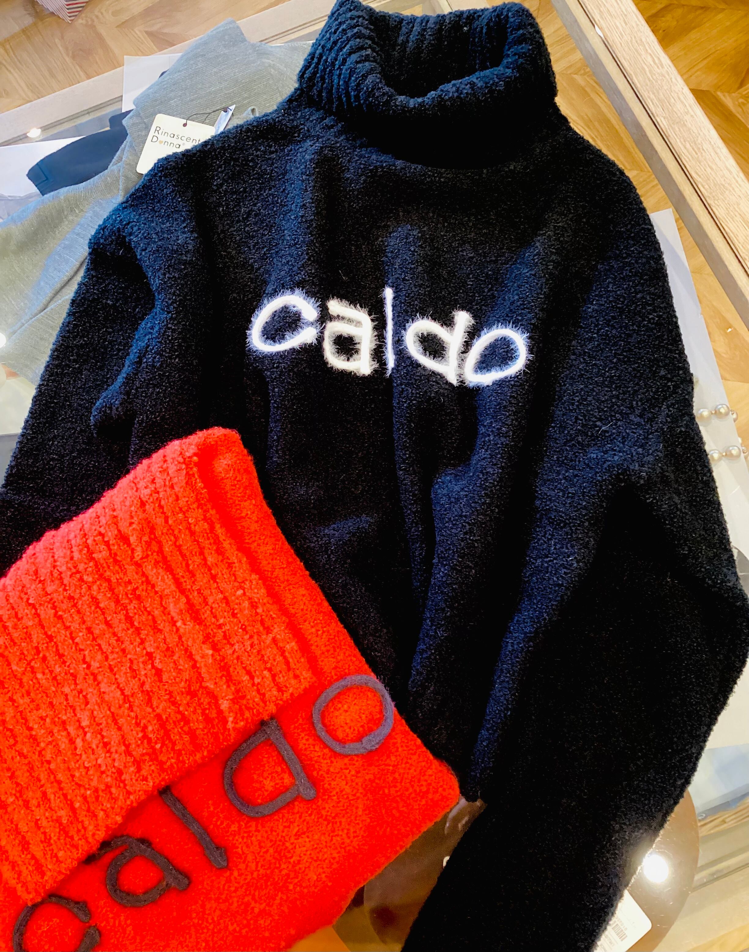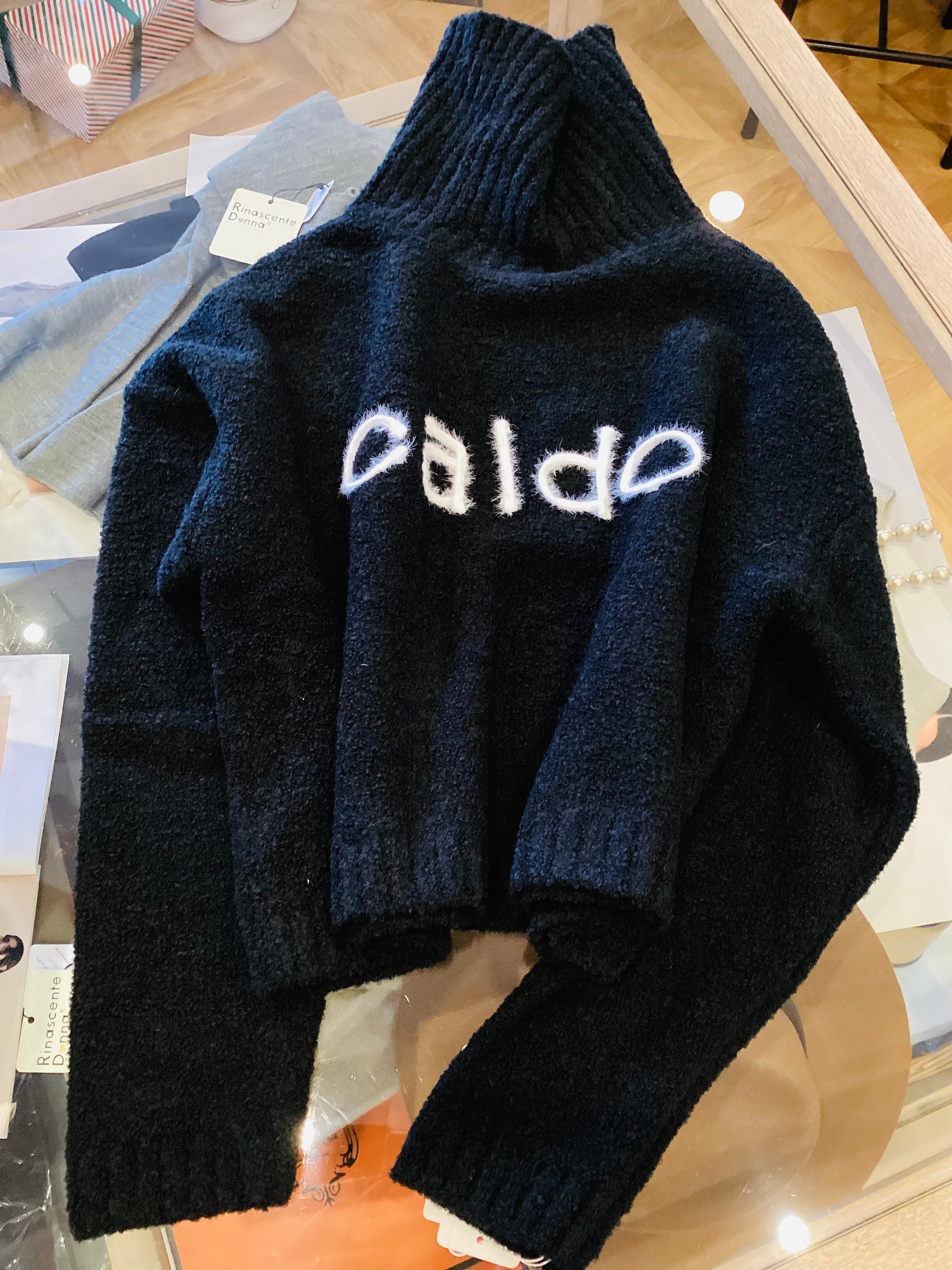 ドロップショルダーロゴ入りタートルニット