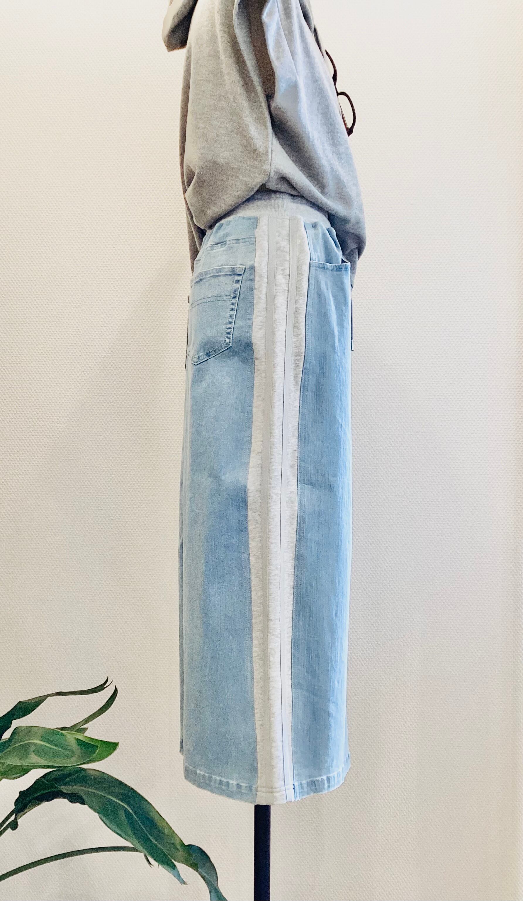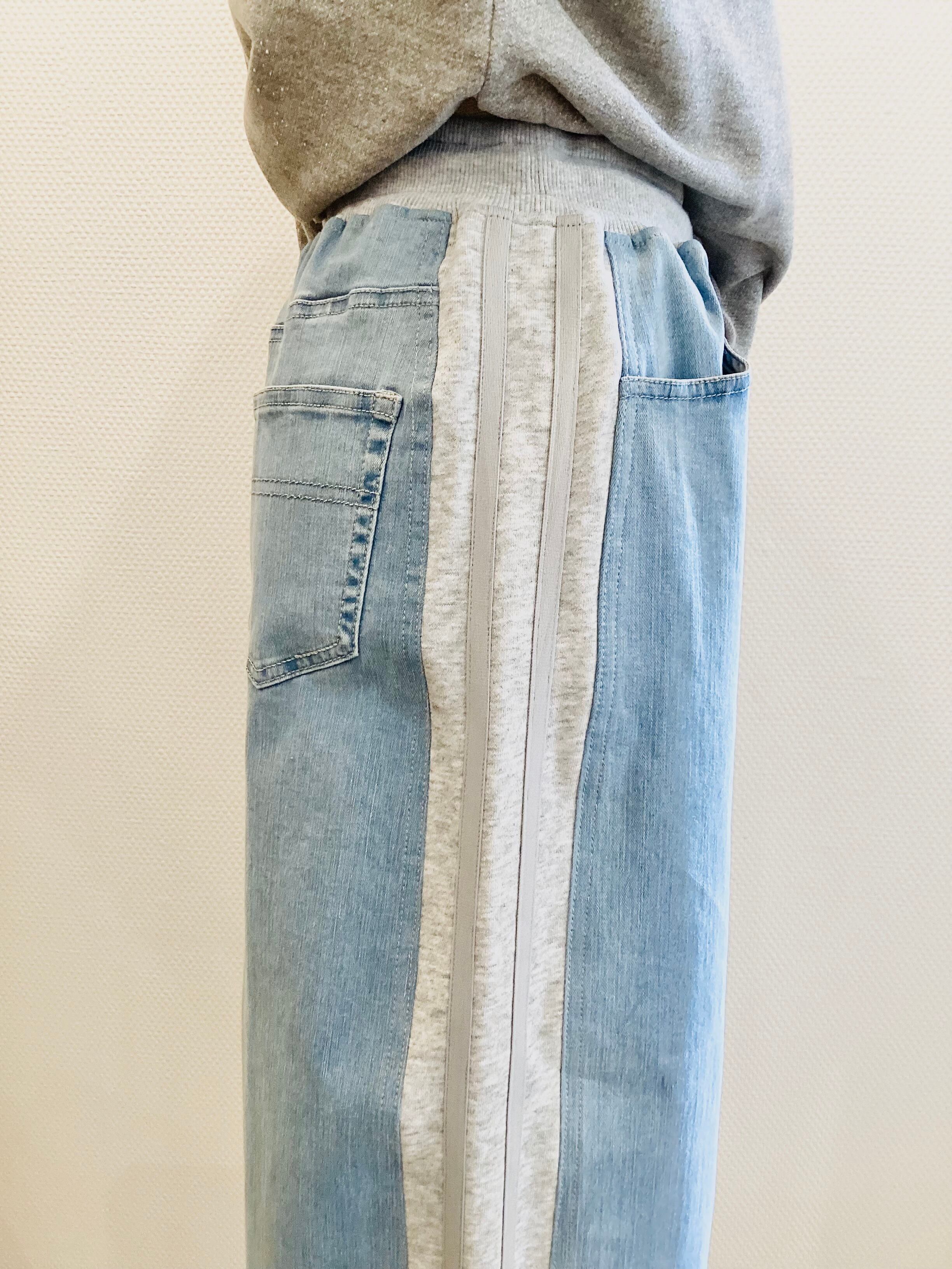 ワークウェア由来のデニムのタフさと、サイドラインの軽快さが融合。