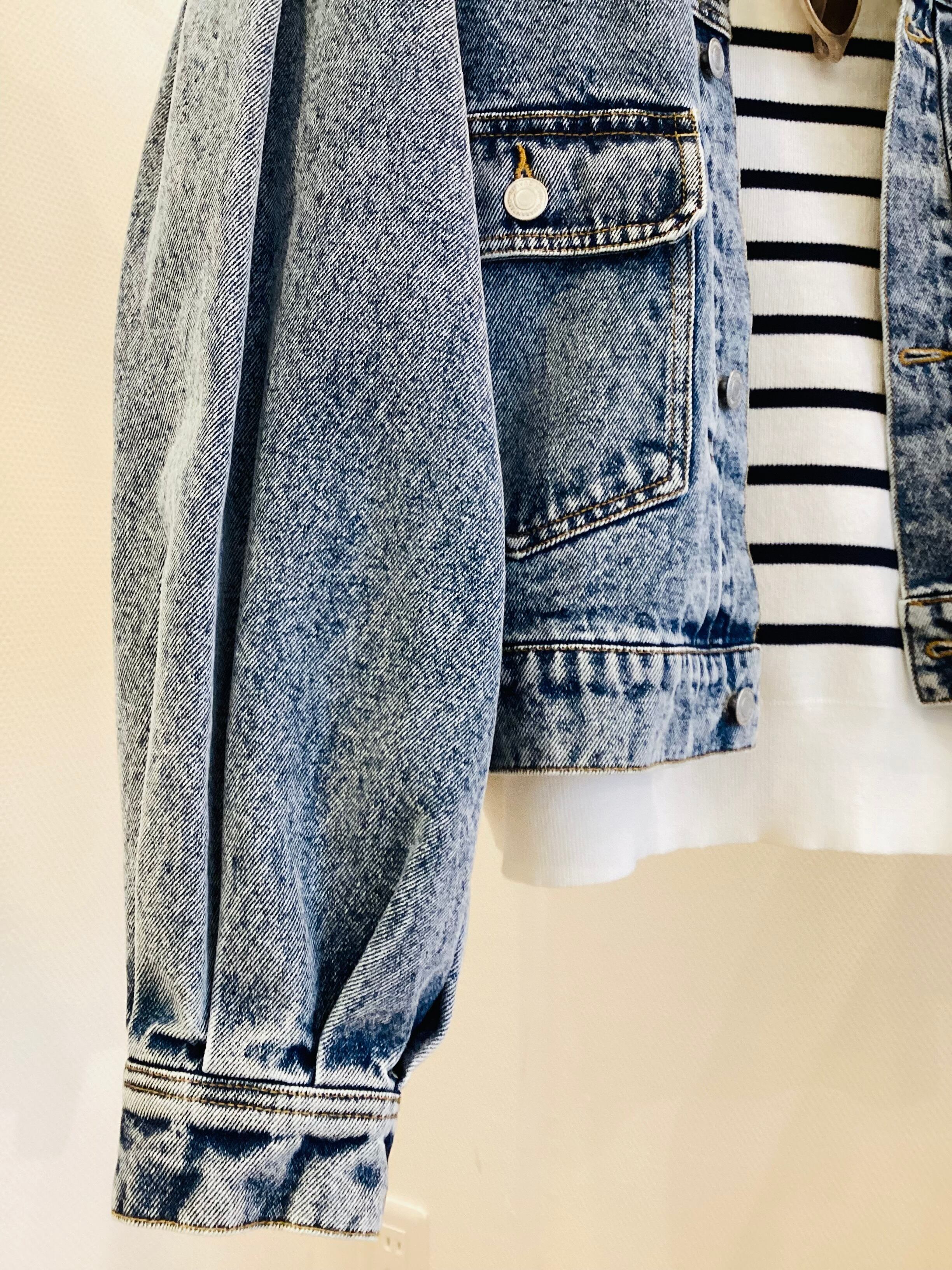 「一目惚れ」のシルエット‼︎ 羽織るだけで、後ろ姿までお洒落♪ 袖を通せばわかる、計算された『ボリューム』 タックが生み出す、ふんわり立体的なボリュームシルエット。 袖口や肩まわりに施されたタックが、ふんわりと丸みのあるボリュームスリーブを演出。 無骨になりがちなデニムジャケットに 女性らしい柔らかさと「モードなニュアンス」をプラスした こだわりの大人にぴったりなGジャンですよ^_−☆ サイズ フリー 綿 100%