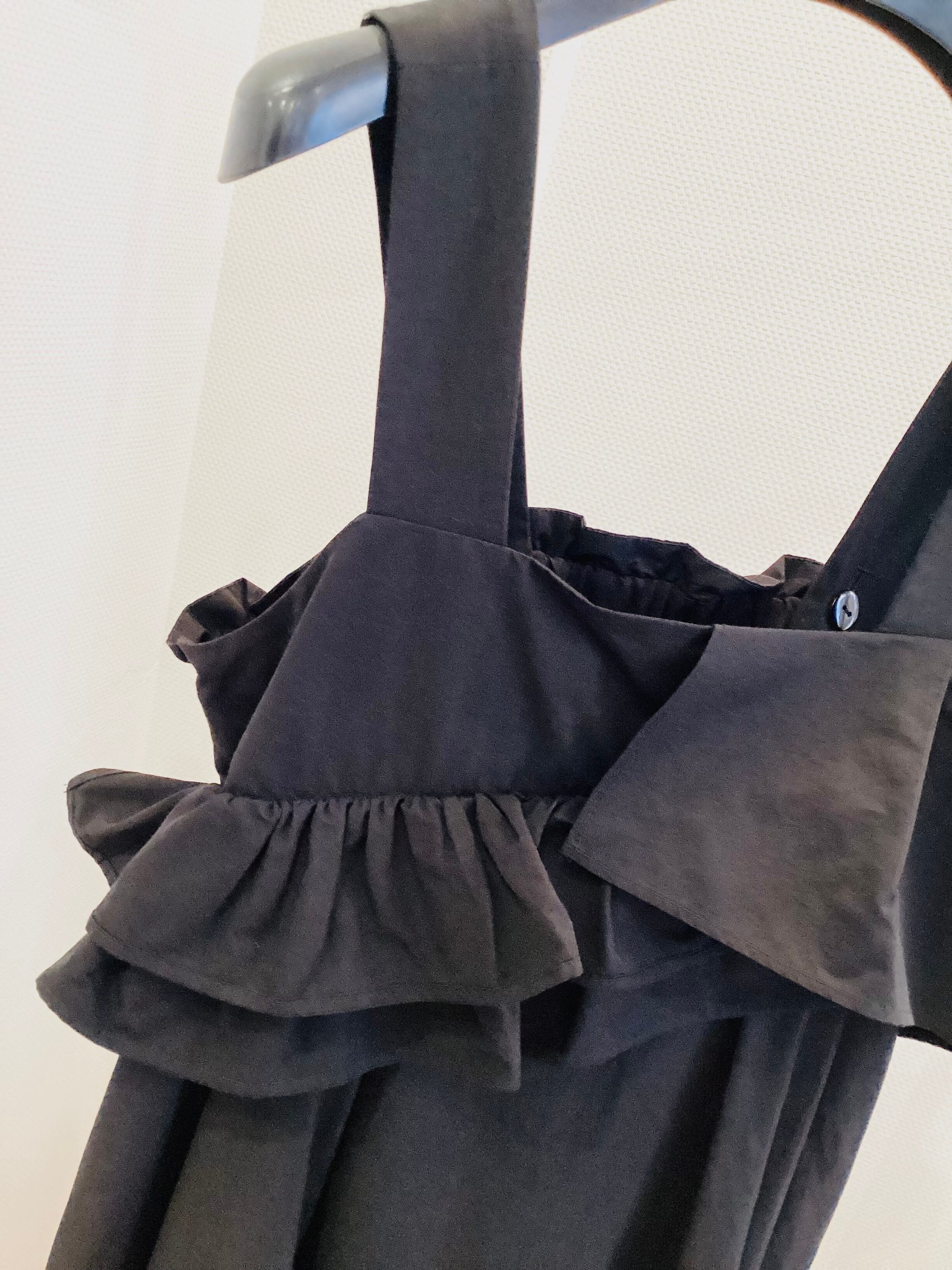 質感で遊ぶ、大人のフォルム♪ 立体的なフリルと、身体のラインを拾わないコクーンシルエット。 このバランスが『大人の余裕』を感じさせてくれるモードなジャンスカ! Tシャツでカジュアルに、ブラウスでレディに。 ジャケットを羽織ればパーティーシーンにも! 着る人の個性を引き立ててくれる主役級アイテムですよ^ ^ サイズ M〜L 綿 61% ナイロン 39%