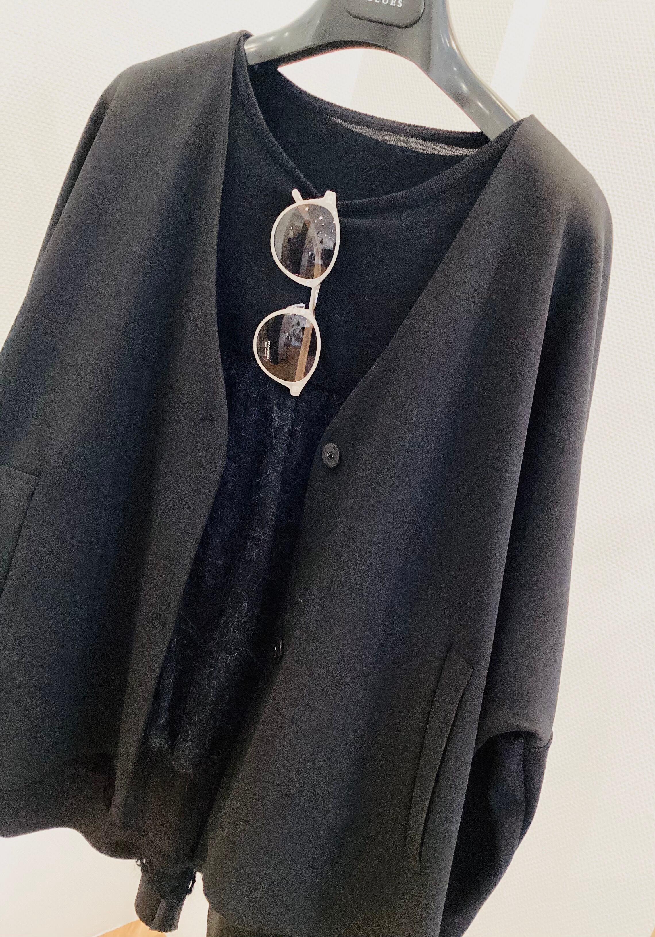 オーバーシルエットが作る大人の余裕と、ジョーゼットの美しい落ち感。 特別なハレの日はもちろん、 式典が終わった後は、デニムやパーカーに合わせて日常を彩る。 そんな『洗練を繋ぐ、大人の新しいマルチアイテム。』 サイドに深く入ったスリットは、重たくなりがちなオーバーサイズに 「軽快なリズム」と抜け感をプラスします。 トレンドのレイヤードスタイルにもぴったり! しかも、シワになりにくく、扱いやすい頼れるアイテムですよ^_−☆ サイズ フリー ポリエステル 96% ポリウレタン 5%