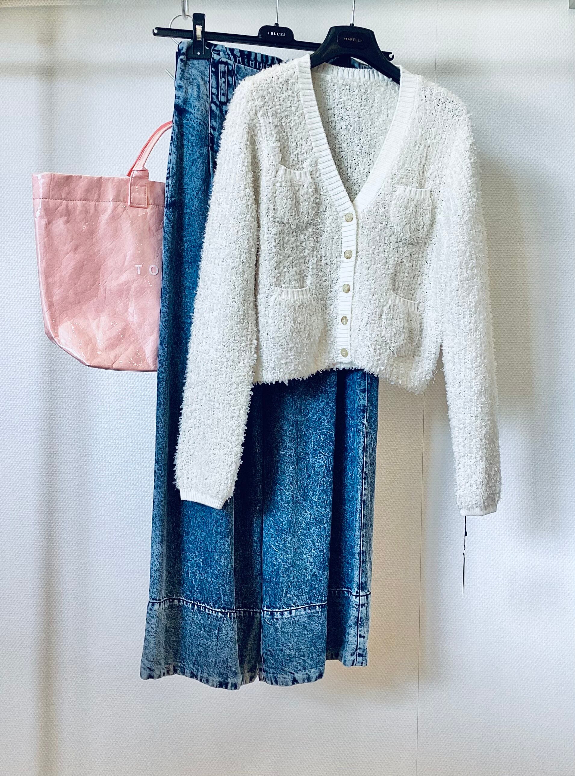 ベーシックボトムスと合わせれば「洗練されたオケージョンスタイル」にと