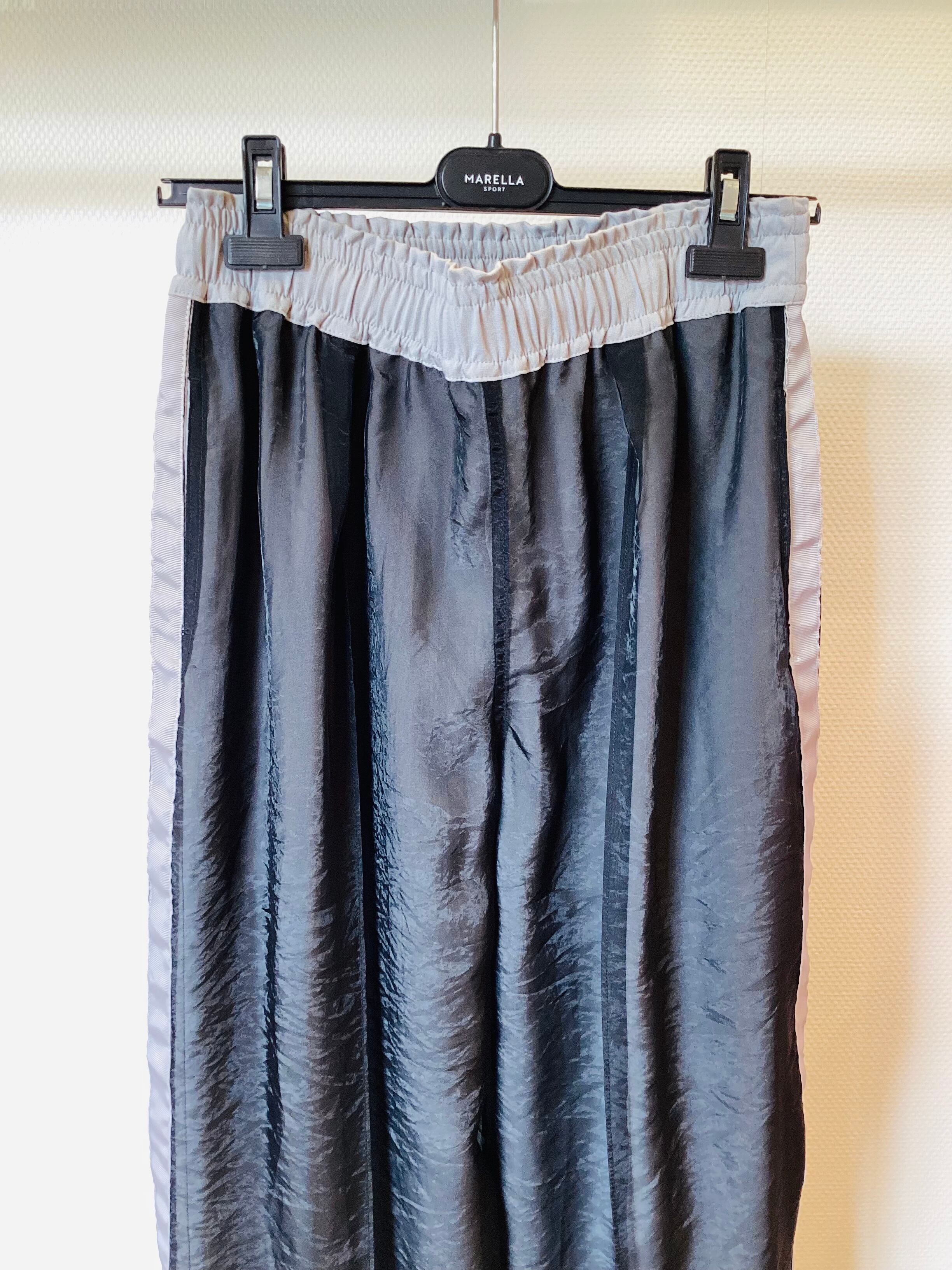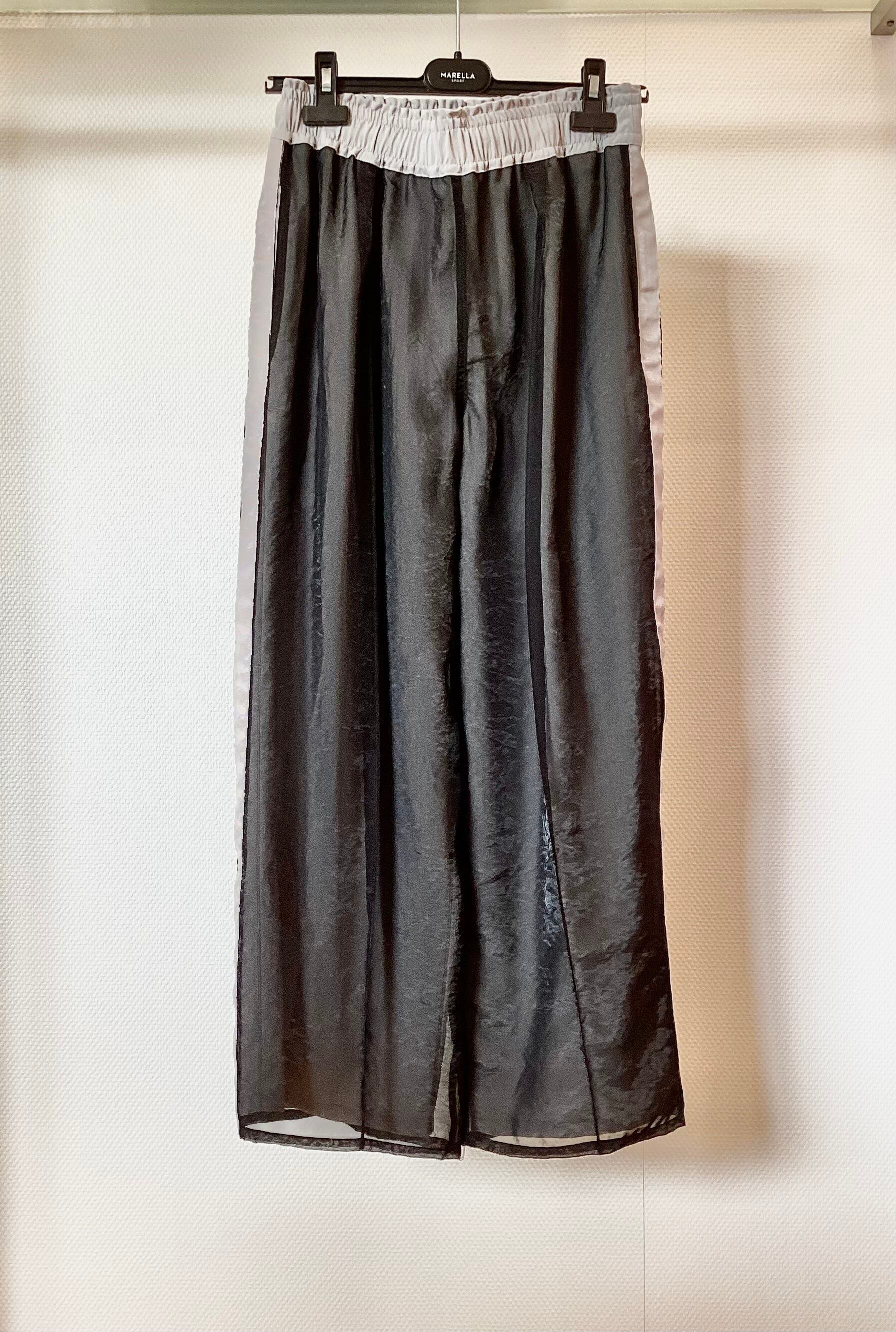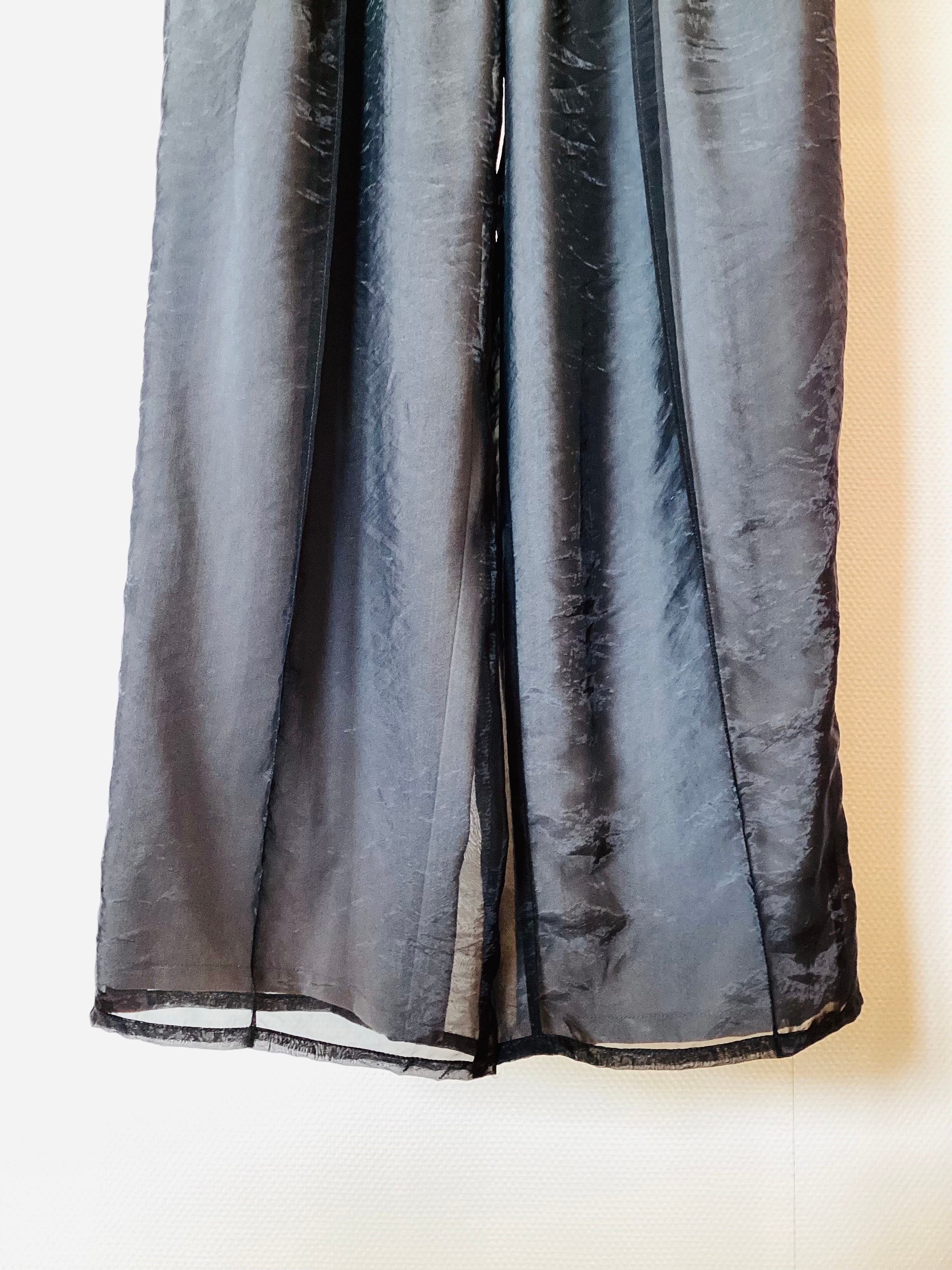 スポーティーな「サイドラインパンツ」を、オーガンジーの透明感でレディに昇華‼︎ 今季のトレンドである「トラックパンツ」を 品よく、そしてモードに穿きこなすための特別な一着です。 しかも、ウエストゴムの楽チン仕様でお家クリーニングの 扱いやすさも嬉しいアイテムですよ^_− サイズ フリー 本体 ポリエステル 45% レーヨン 40% ナイロン 15% 別布 ナイロン 55% ポリエステル 45%