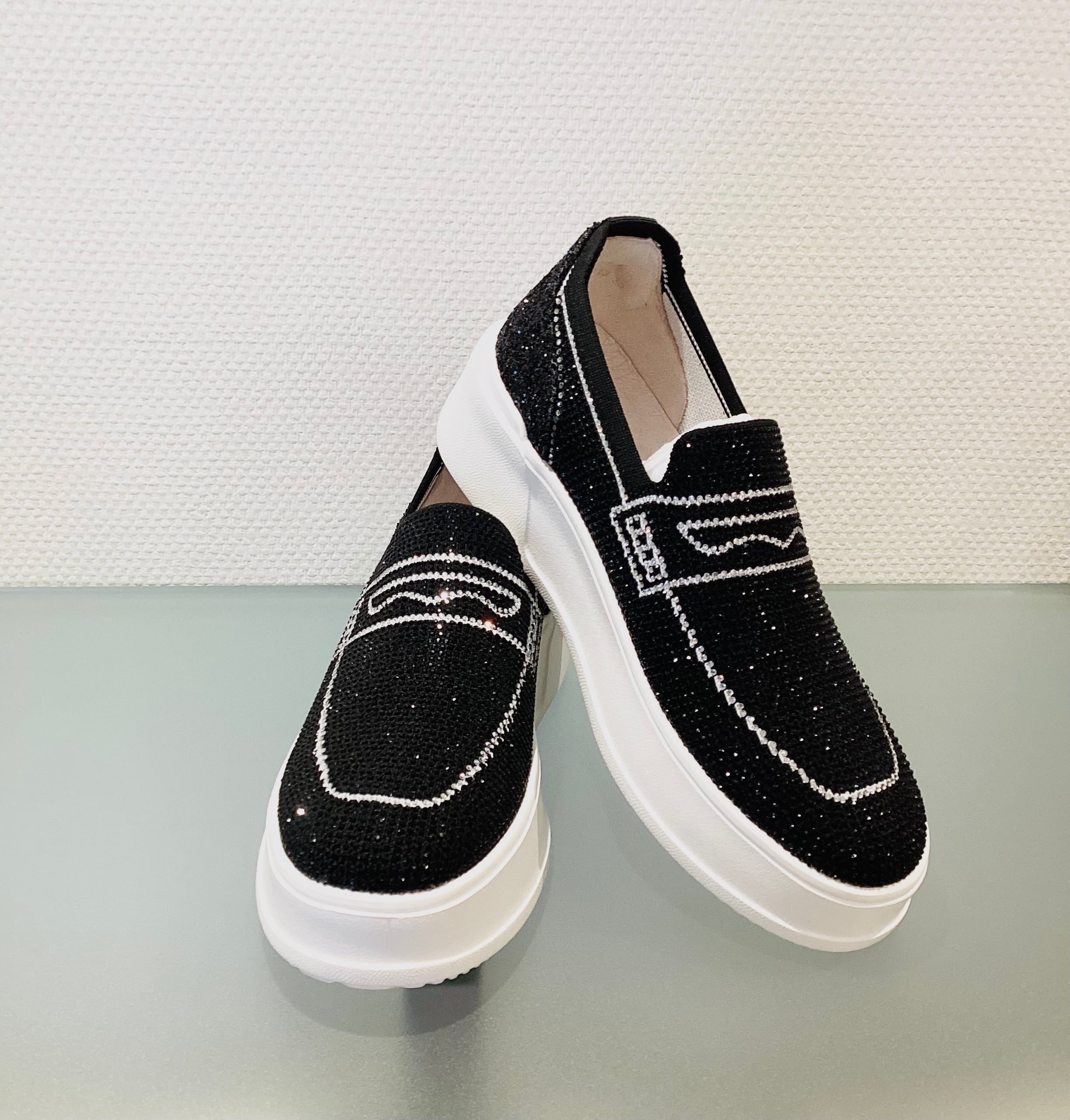 一面に散りばめられたビジューでローファーをアートしたデザイン。