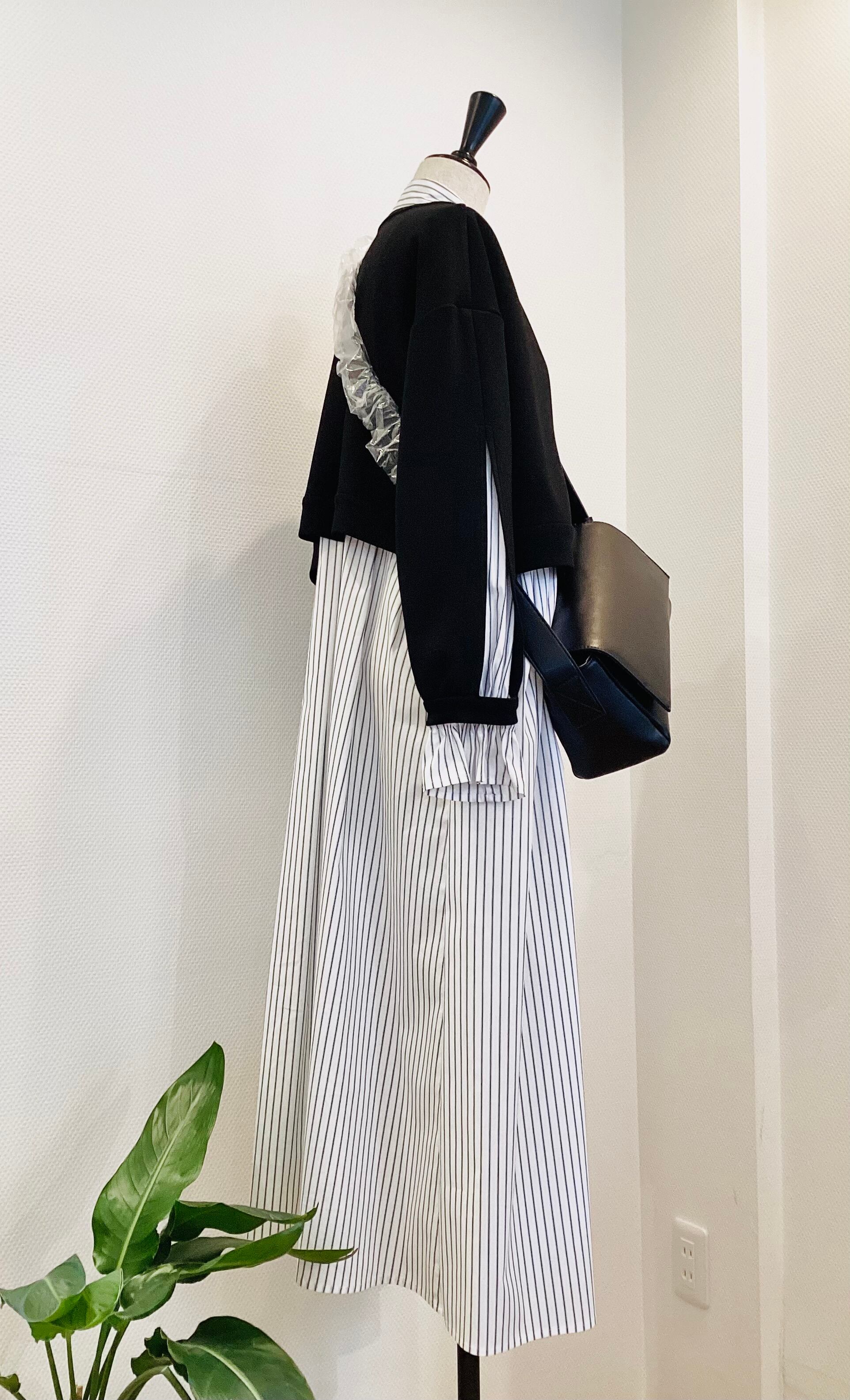 セットで完璧なのはもちろん、爽やかなストライプワンピース単体でも