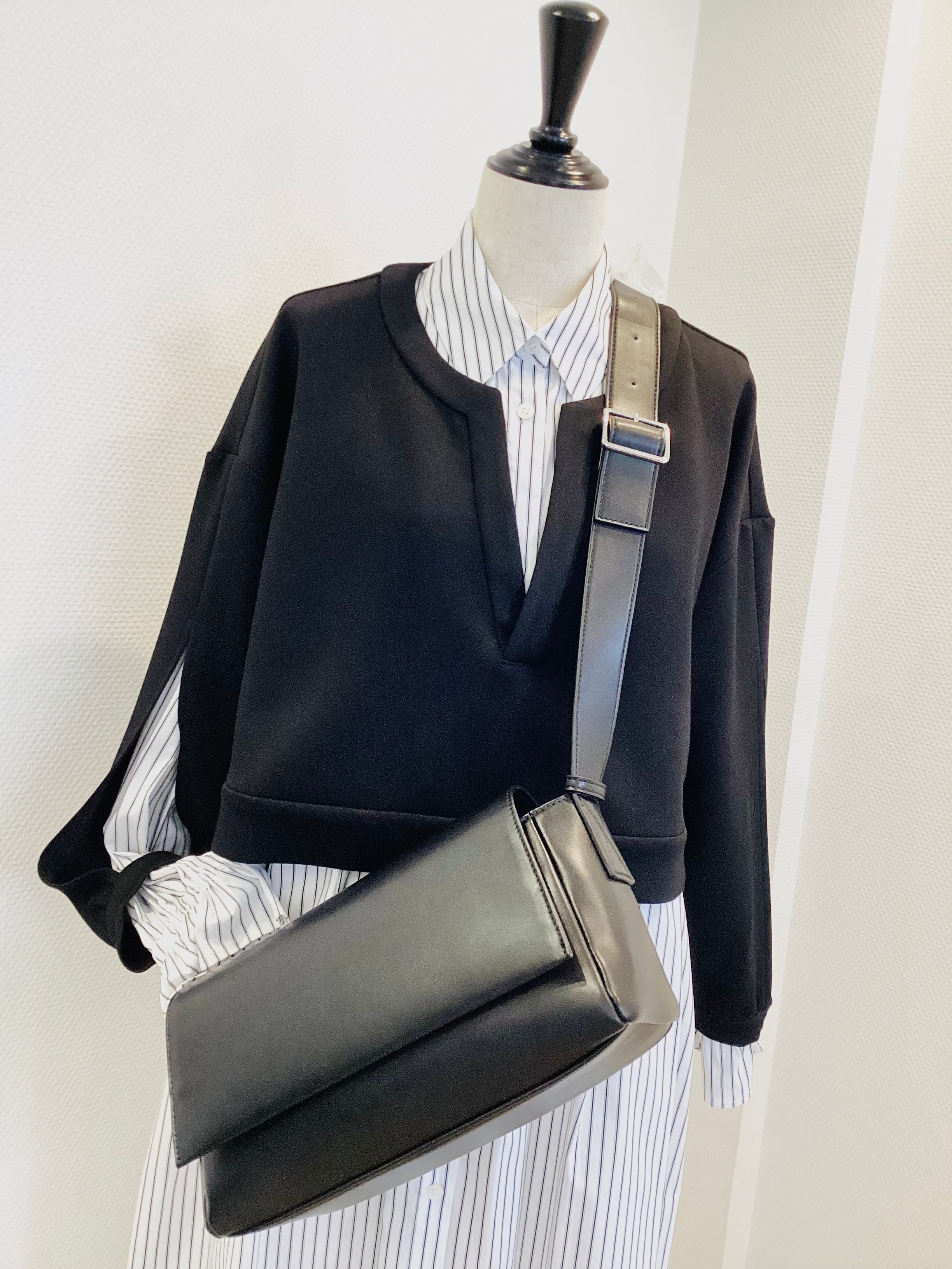 ボンディングベストはオーバーシルエットで短め、ブラウスやカット、パーカーなど