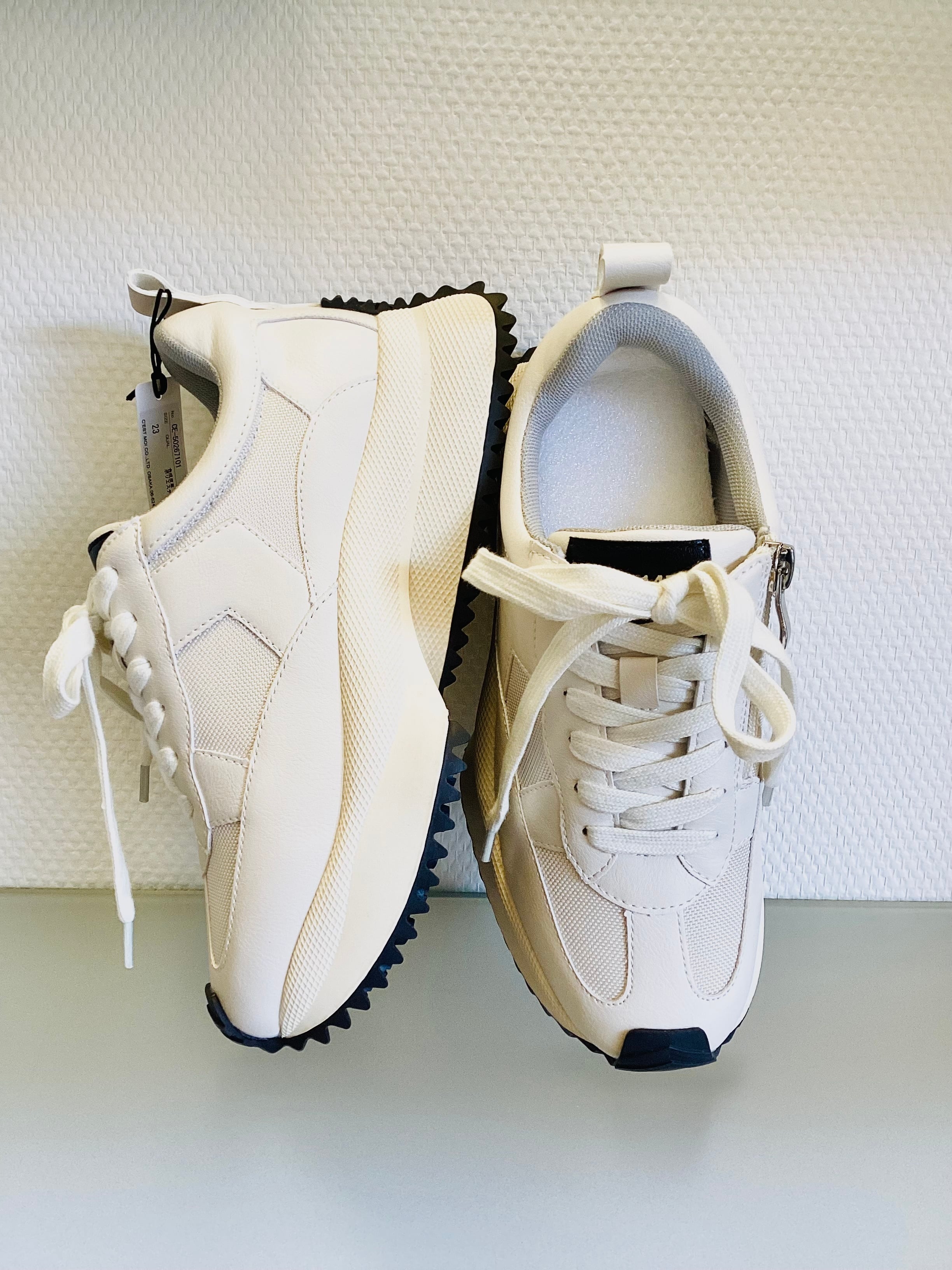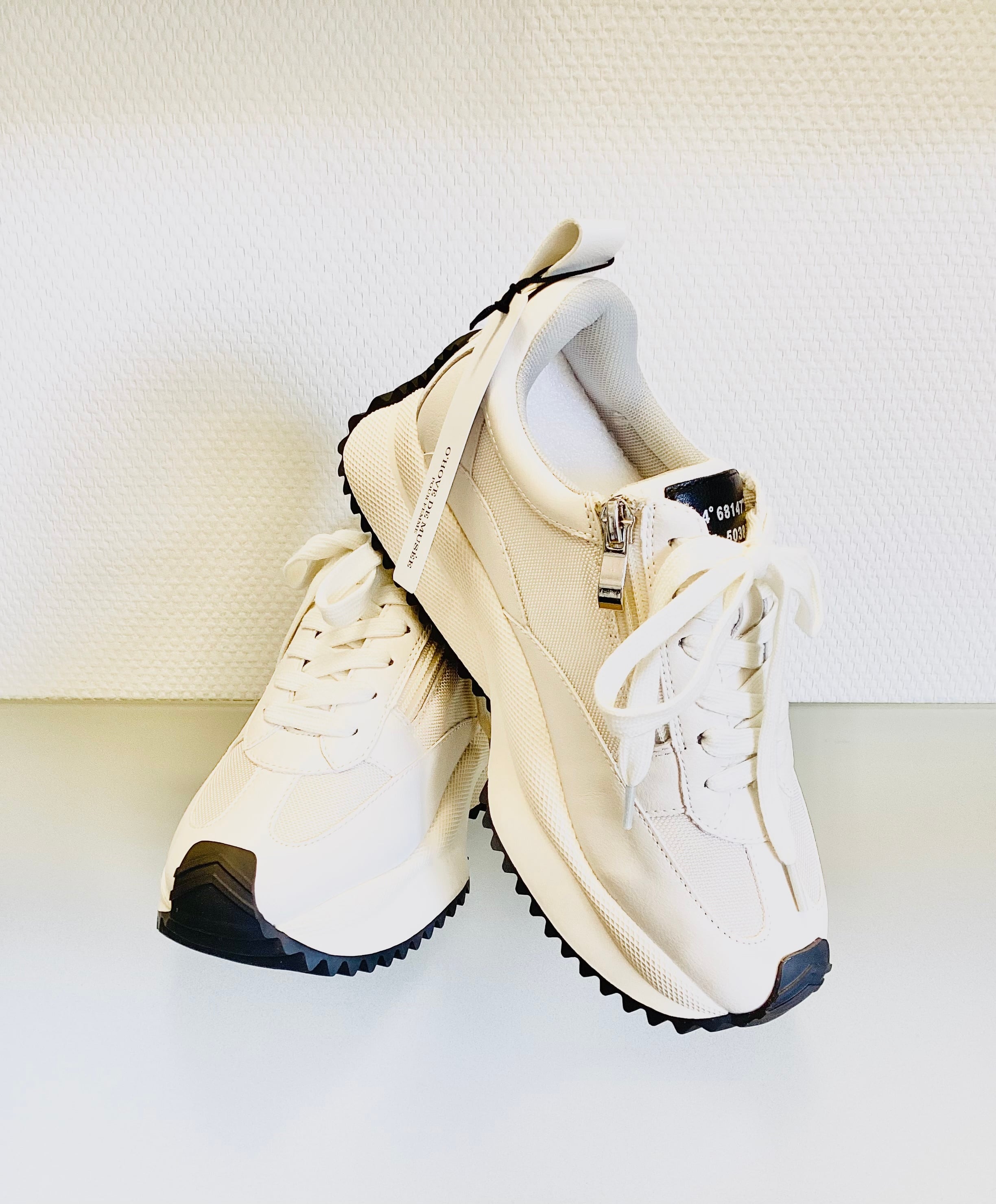 メッシュ素材とのコンビネーションで夏でも快適に着用できるスニーカー! ファスナー仕様で着脱も簡単。 プライス以上のクオリティーでおすすめアイテムですよ^_−☆ 合成皮革 ポリエステル ソール高 2.5cm ヒール高 5cm
