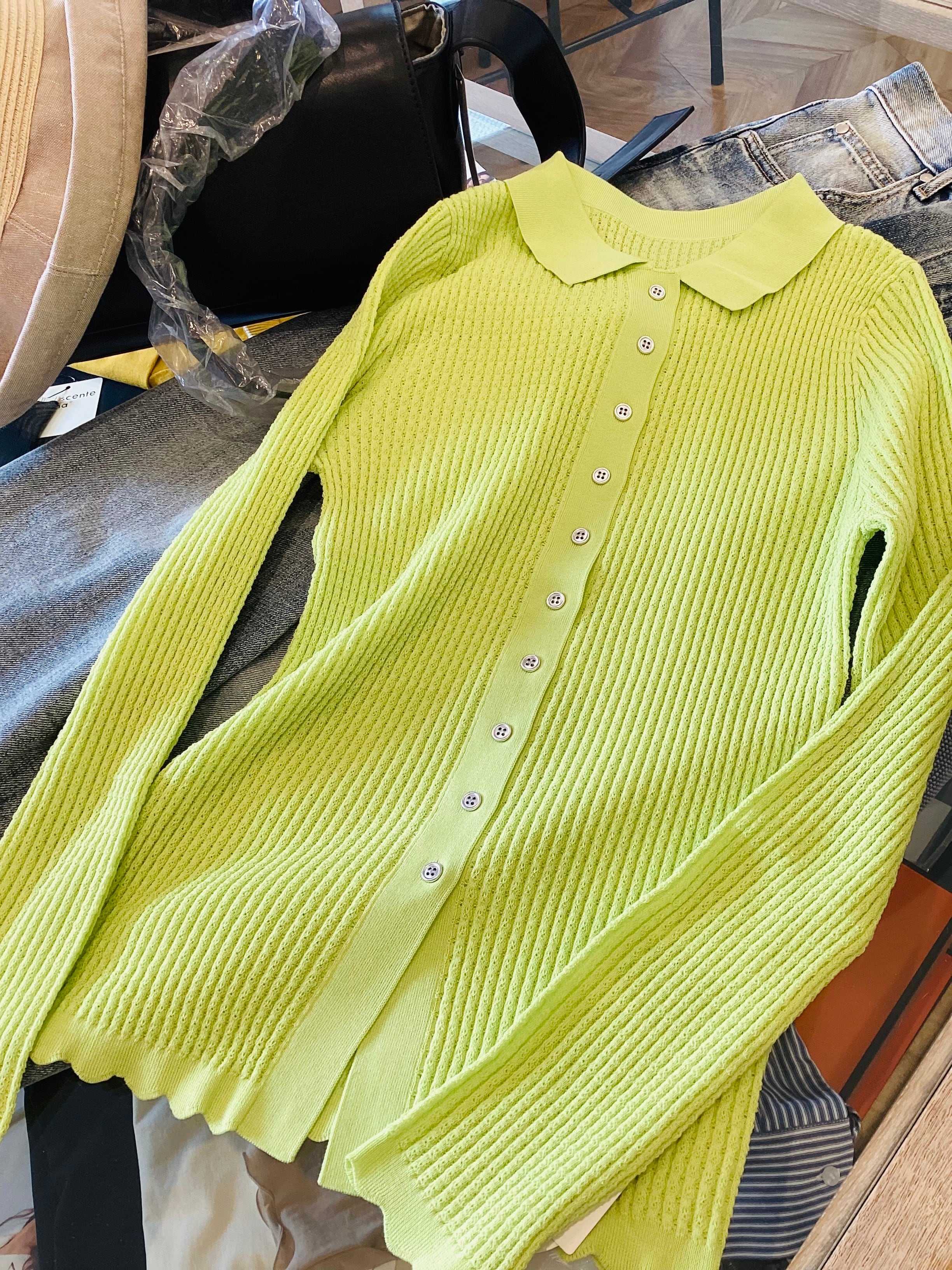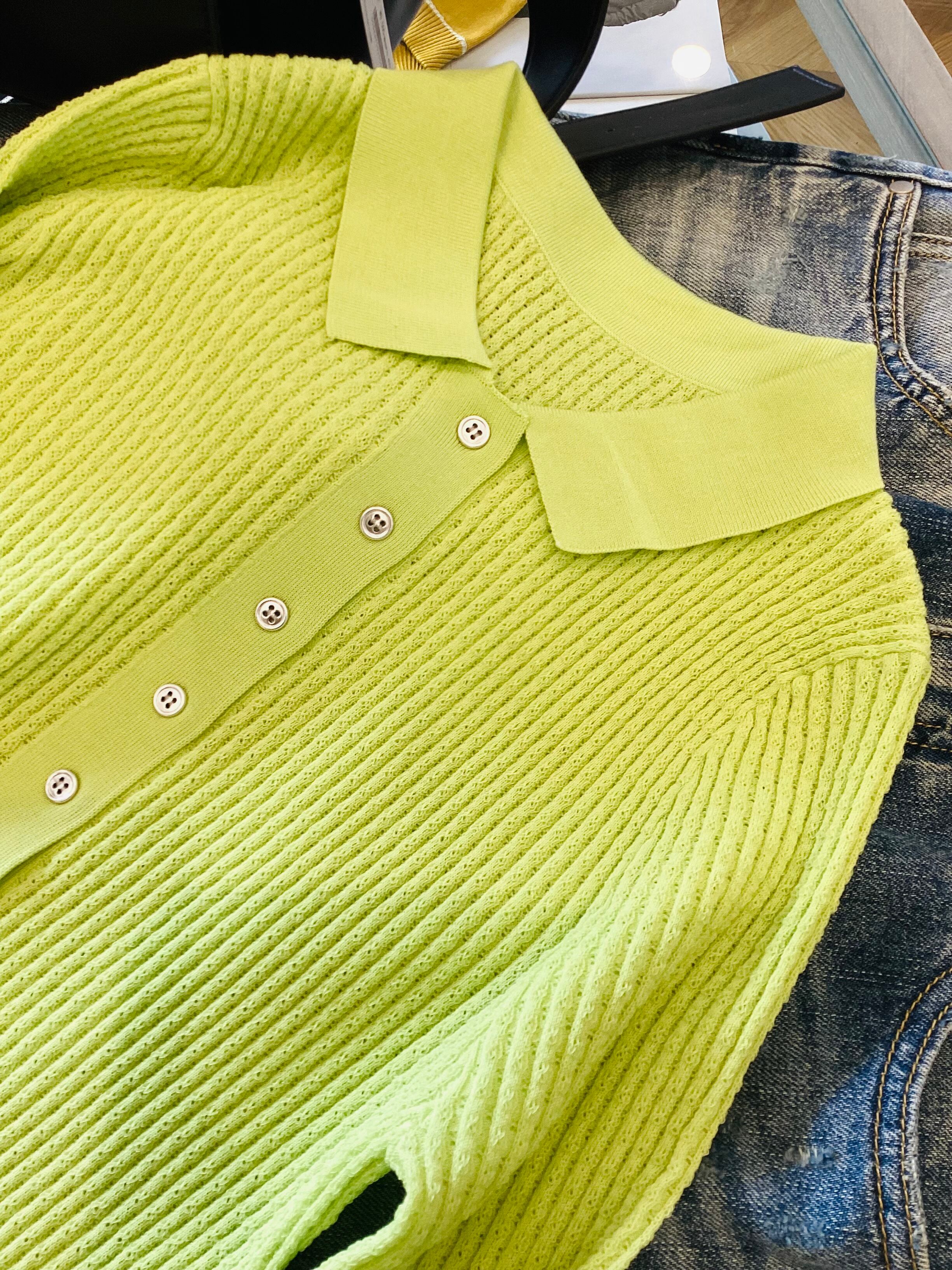 春を呼び込むライムグリーン。1枚で「着痩せ」と「旬」を欲張るポロカーディガン♪