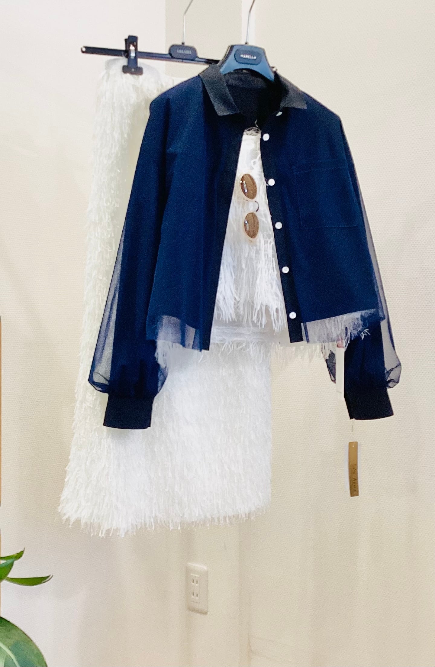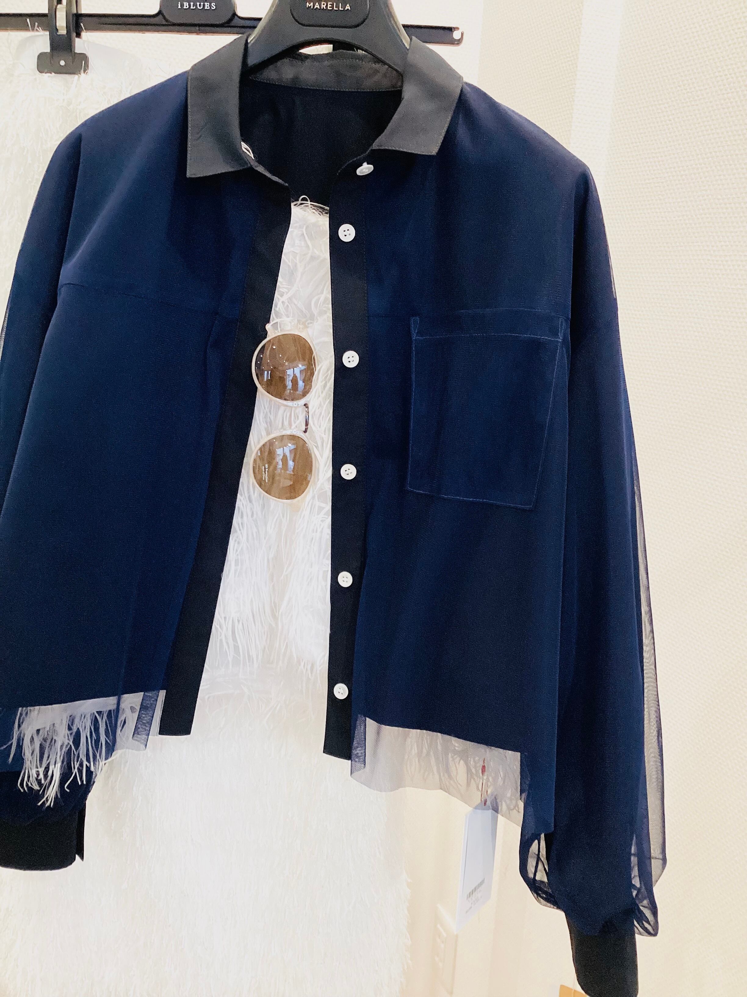 透明感のある重なりが素敵なオーガンジーをまとったアイテム♪ ブラウスの軽やかさとジャケットの端正さを併せ持ち さらにオーガンジーのベールを被せたこの一着は まさに今の気分を象徴する「新しいクラシック」 前を閉じて知的なブラウスとして着るのはもちろん フロントを開ければ軽快なジャケットに早変わり。 今から夏まで使える息の長いアイテムですよ^_−☆ ポリエステル 100% サイズ M