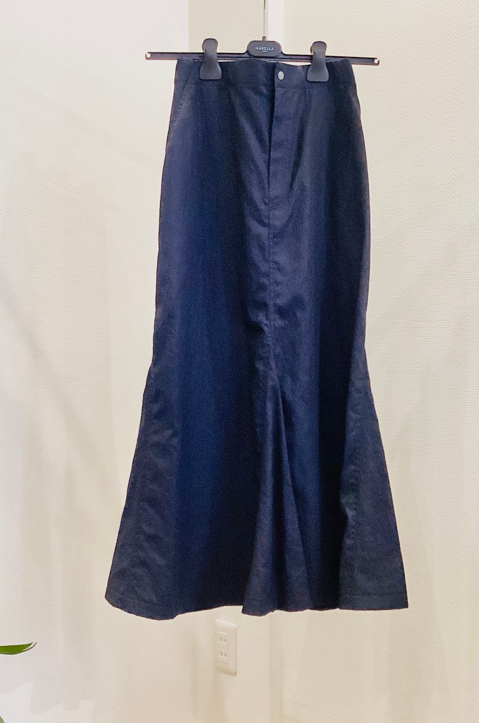 歩く姿さえ、デザインになる♪ 計算された曲線とフレアが描く、新時代のアーバン・マーメイド。 単なるフェミニンなアイテムから 今季は「ハンサムな外し」や「ドラマチックな日常着」へと進化を遂げた マーメイドロングスカート。 注目の「ダブルプレストジャケット」や「ジレ」といったマニッシュなアイテム とも相性が良く。強さと柔らかさを共存させる、大人のための最旬シルエット。 この春、新たなスタイルを楽しむワンプラスアイテムですよ^_−☆ 綿 100% サイズ M(後ろゴム)
