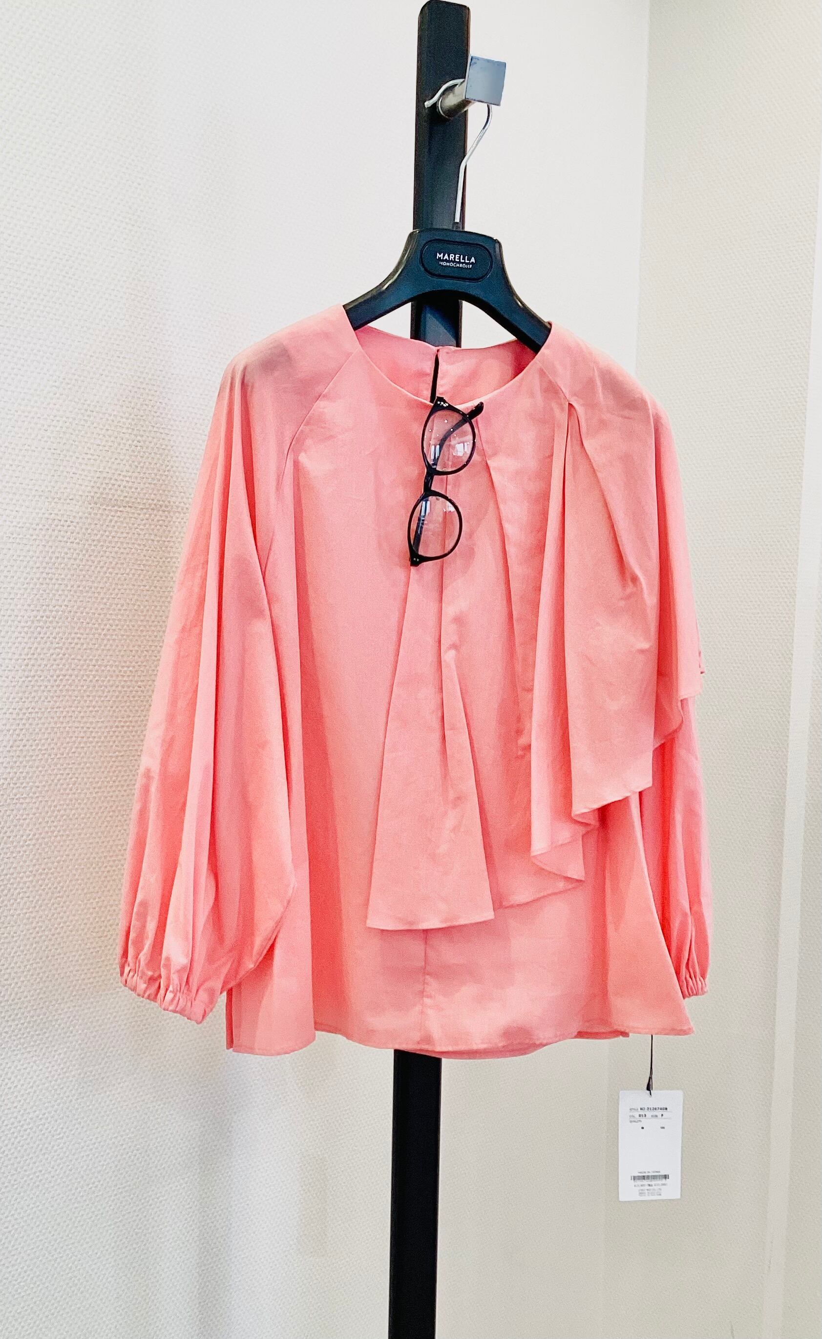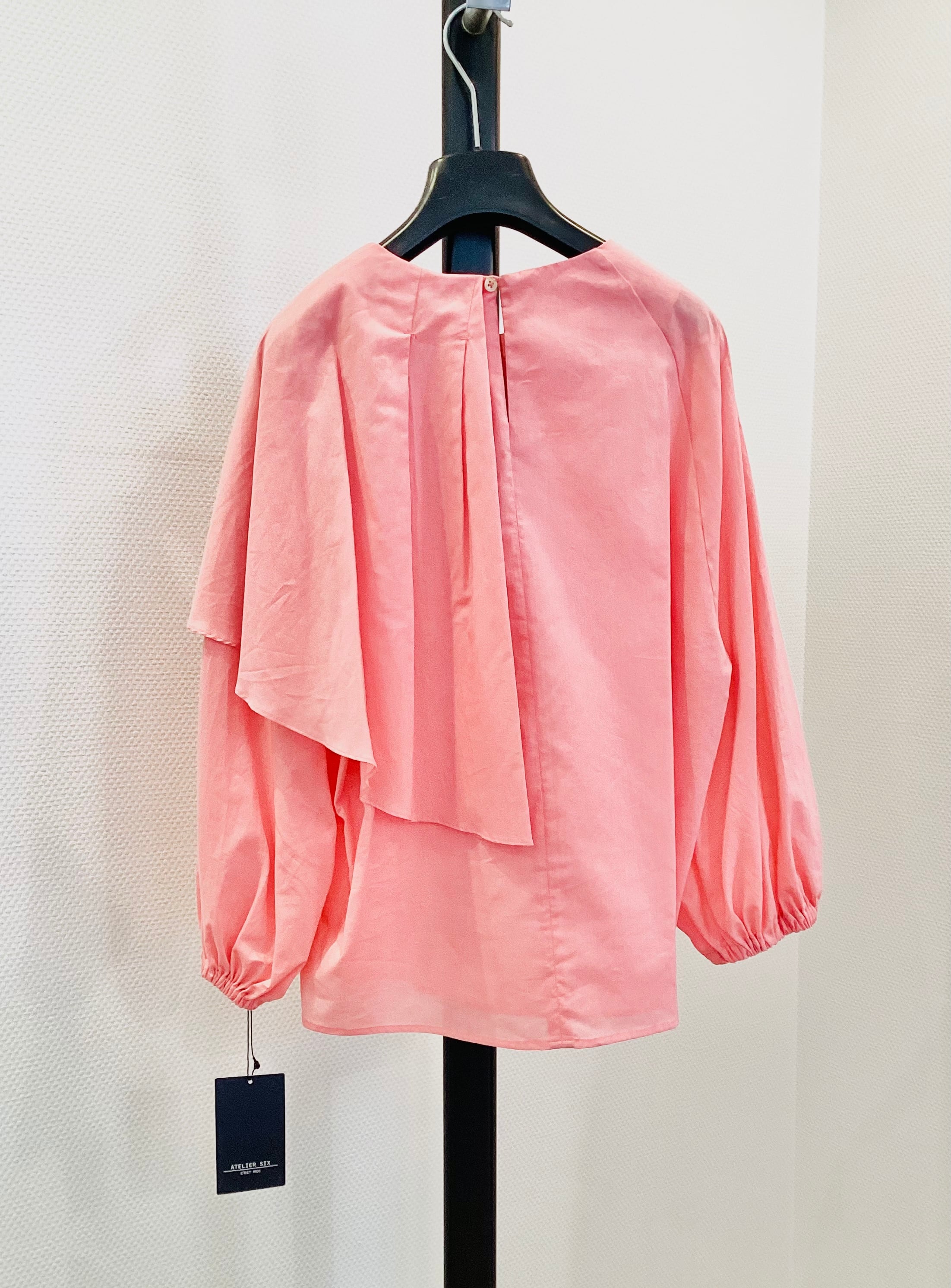 左右非対称に重なり合うランダムなケープ衿が、肩周りを華奢に見せつつ 顔周りに華やぎをプラス。 今季注目のピンクを甘くなりすぎないランダムなカッティングで表現した 大人可愛いデザインは、まるで「着るアクセサリー」のような存在感。 オフィスシーンから週末デニムコーデまで楽しめる 今季注目の主役級アイテムですよ^_−☆ サイズ フリー 綿 100%