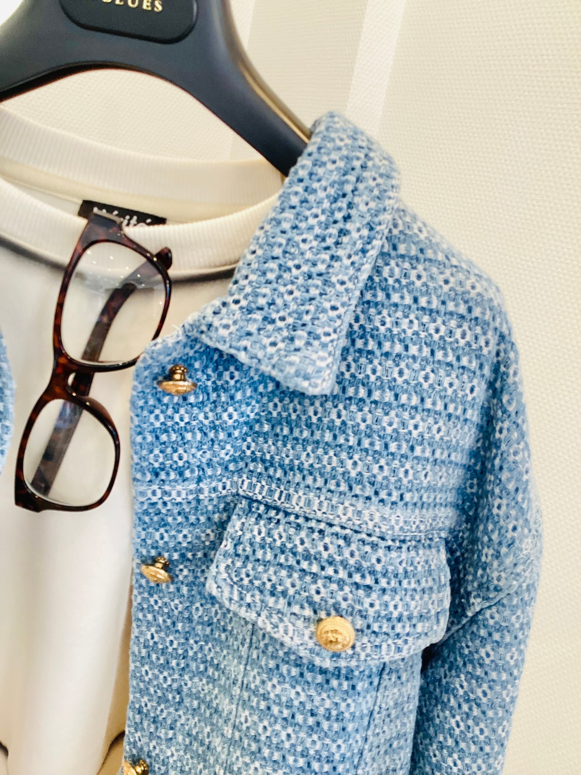 カーディガンの軽やかさと、ジャケットの品格をいいとこ取りした、 春の主役を張れる一着です。 幾何学模様を、綿ポリエステルのクリーンな編み地で表現。 シャツ感覚で羽織れるのに、ジャケットのような「きちんと感」を演出できます。 しかも、型崩れしにくく、シワにも強い、頼れる素材感‼︎ Gジャンほどカジュアル過ぎず、上品さもある程よい肩の力の抜けた 大人のユーティリティ・アウターですよ^_−☆ サイズ M 綿 95% ポリエステル 5%