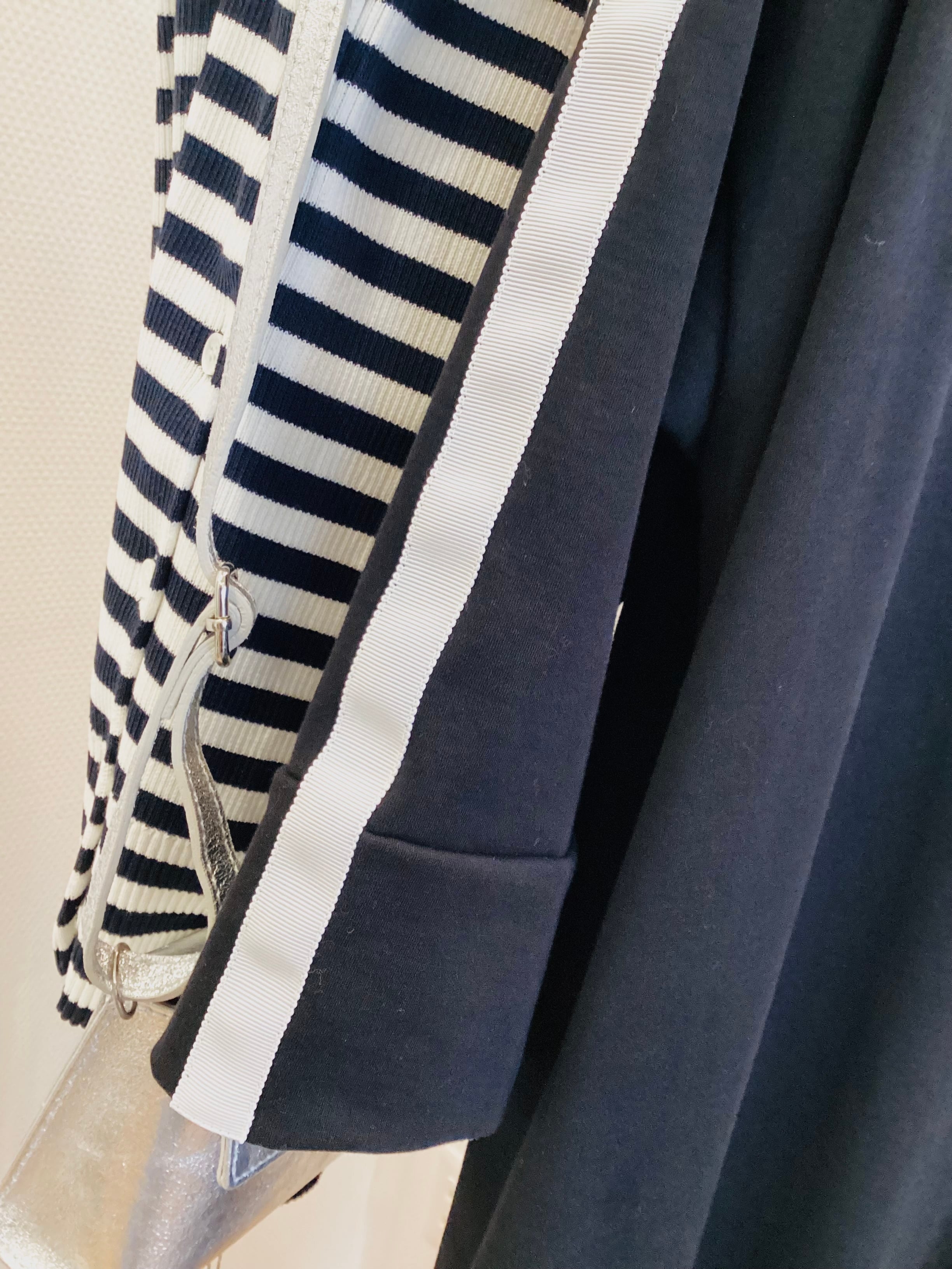 裾にはサイドスリットが入り、ボトムを合わせて「チラ見せ」するのも