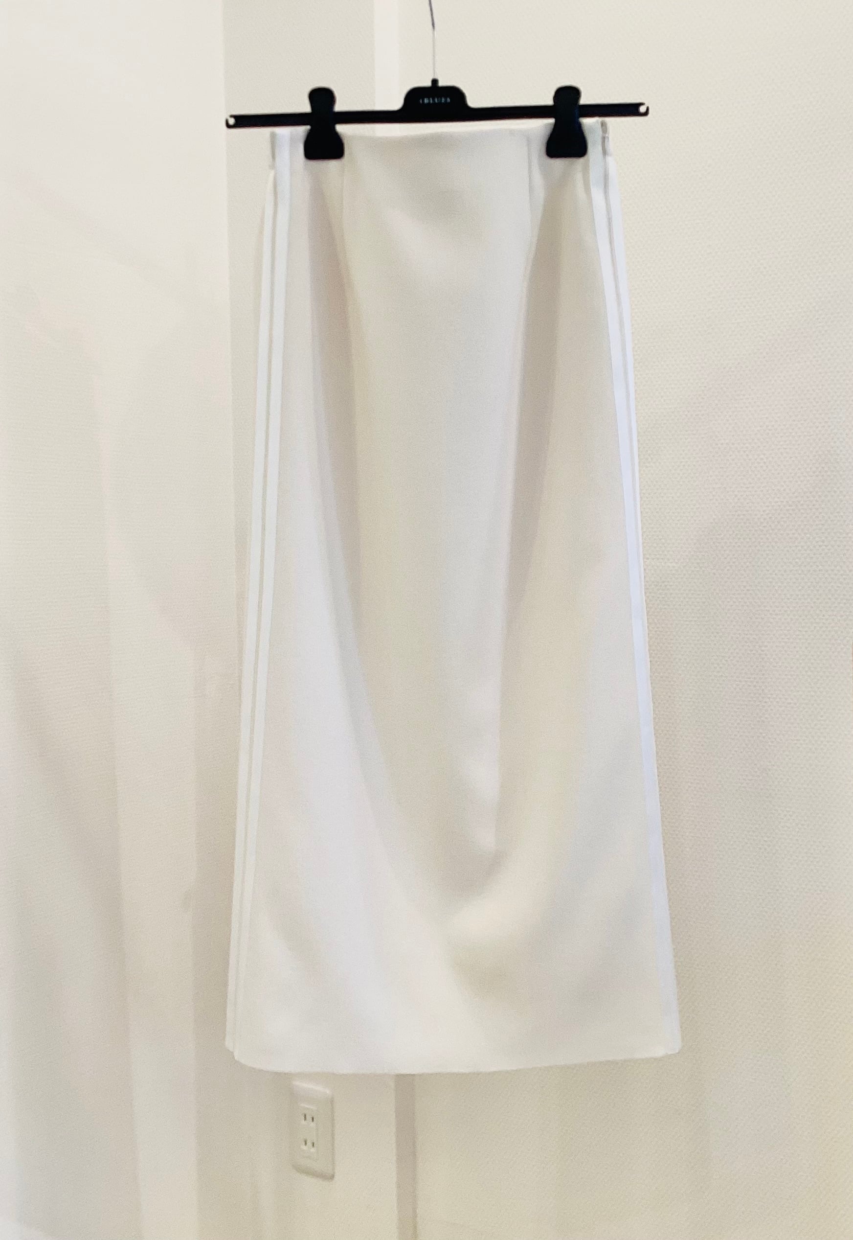 シワにならず上質感あるポリジョーゼットにサイドラインを プラスし、スポーツミックスに仕上げた 大人のリラックススカート! 単品はもちろん、共のトップスでセットアップで 更に統一感あるコーデも素敵ですよ^_−☆ サイズ M ポリエステル 100%