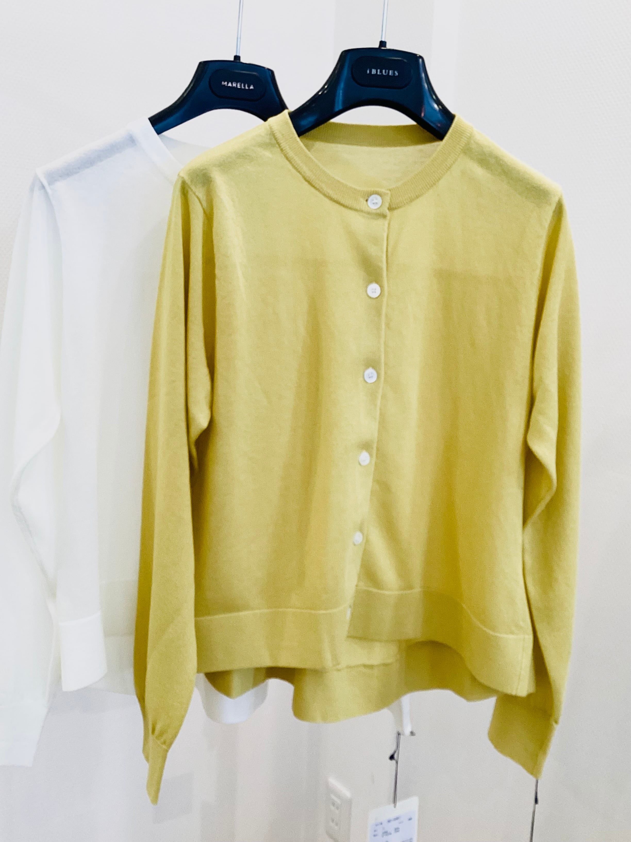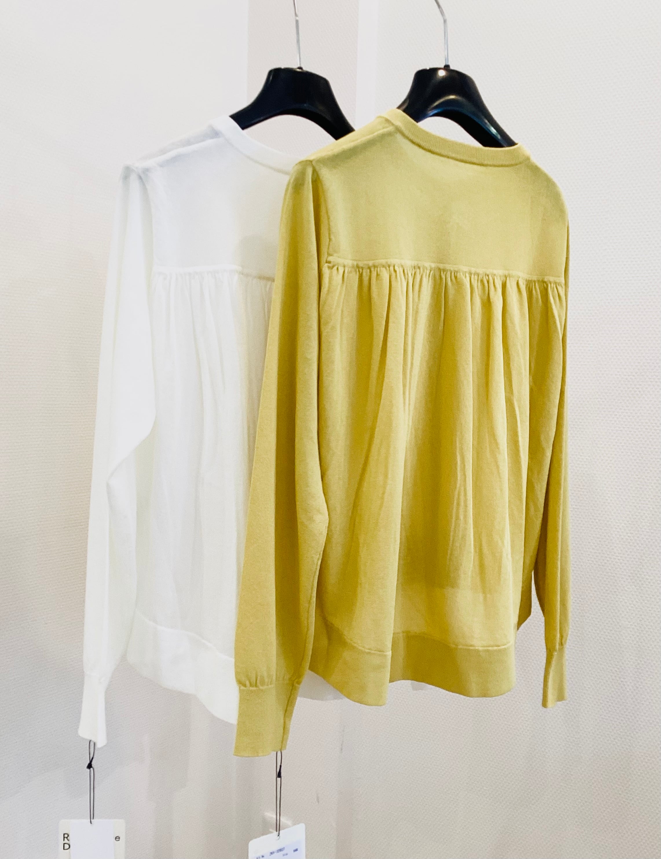前後のギャップが、大人のカジュアルを都会的にクラスアップさせてくれる一着です。 正面は端正な印象、背中はドラマチックなフレア。 バックシャン(後ろ姿映え)を、日常使いしやすいニットに落とし込んだ 控えめだけどちょっとお洒落が使いやすいアイテムです。 今の時期ならアウター下に、暖かくなると羽織りとして 振り幅広く使えますよ^_−☆ サイズ フリー アクリル 84% ポリエステル 16%