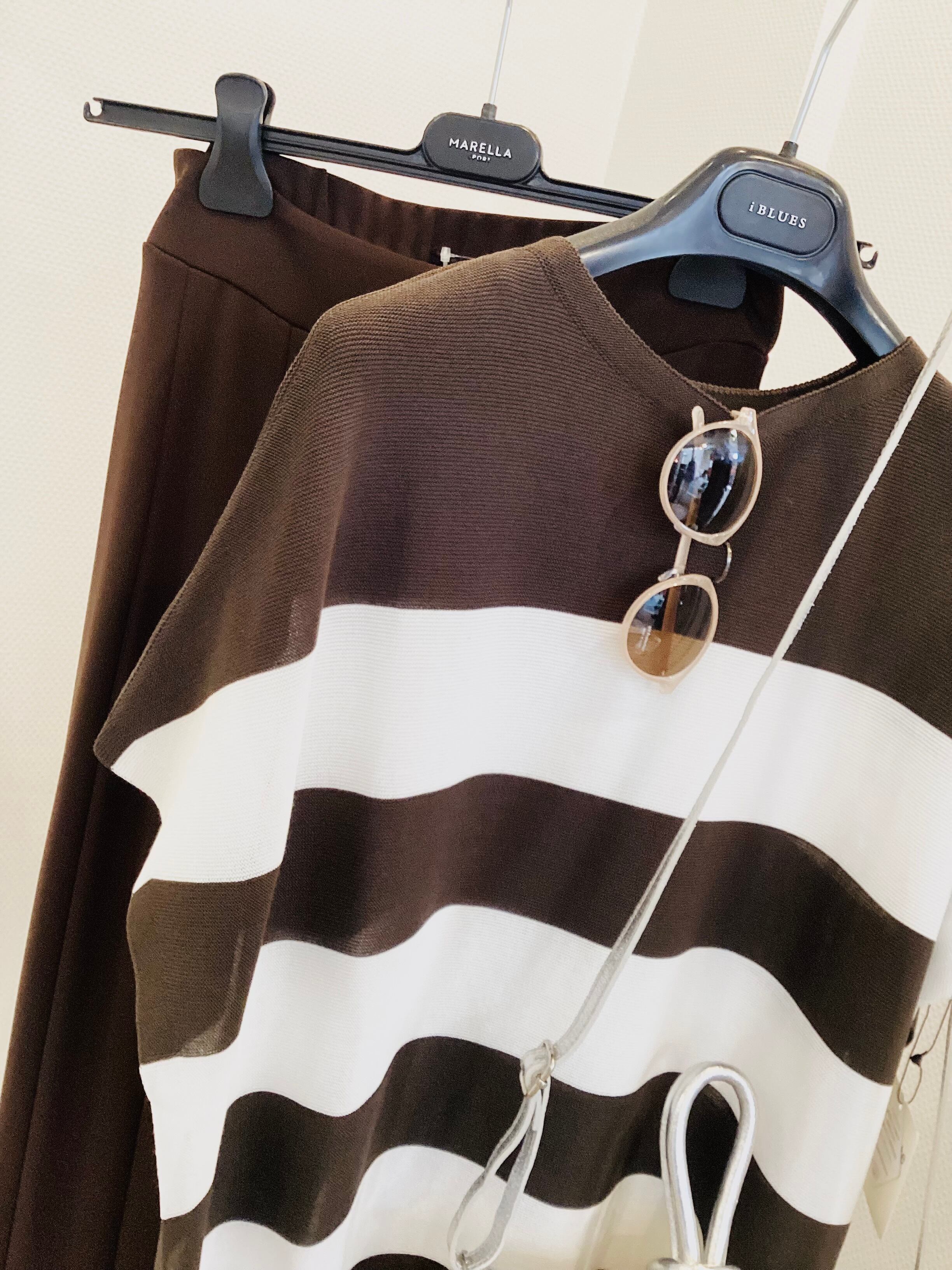 継ぎ目のない、究極のシームレス・プルオーバー♪ ホールガーメントが叶える、体に滑らかに寄り添うノンストレスな快適さ。 定番のボーダーを、ビターブラウンと白の上質な配色で都会的で大人っぽい表情に。 5分袖は二の腕を美しくカバーしつつ、これからの季節にぴったりな清涼感を叶えます。 洗練された大人のリラックス・モードスタイルに最適な アイテムですよ^_−☆ サイズ フリー ポリエステル 55% 綿 45%
