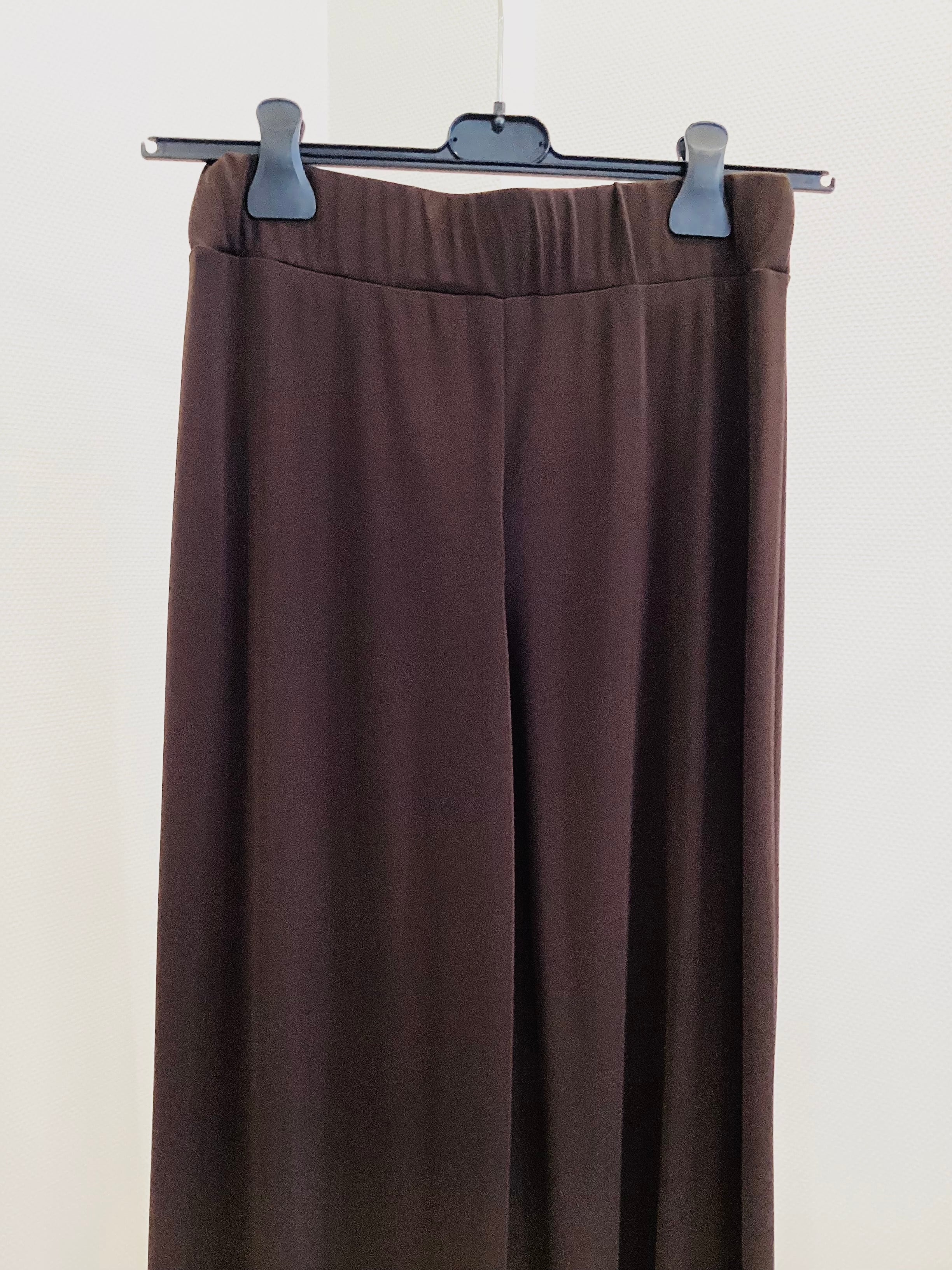 惹きつける、究極のとろみ落ち感。 上質な素材が作る、滑らかでとろけるような肌触り。 一度脚を通すと病みつきになるほどの軽やかさです。 計算されたフロントタックが描く縦ラインは 立ち姿をどこまでも上品で知的に見せてくれます。 身体のラインを拾わず、動くたびに美しく揺れるシルエットは まさに大人のリラックス・モード。 これからの季節の強い味方、楽チンだけどスタイルが決まるとろみパンツですよ^_−☆ サイズ S〜M(総ゴム) ポリエステル 95% ポリウレタン 5%