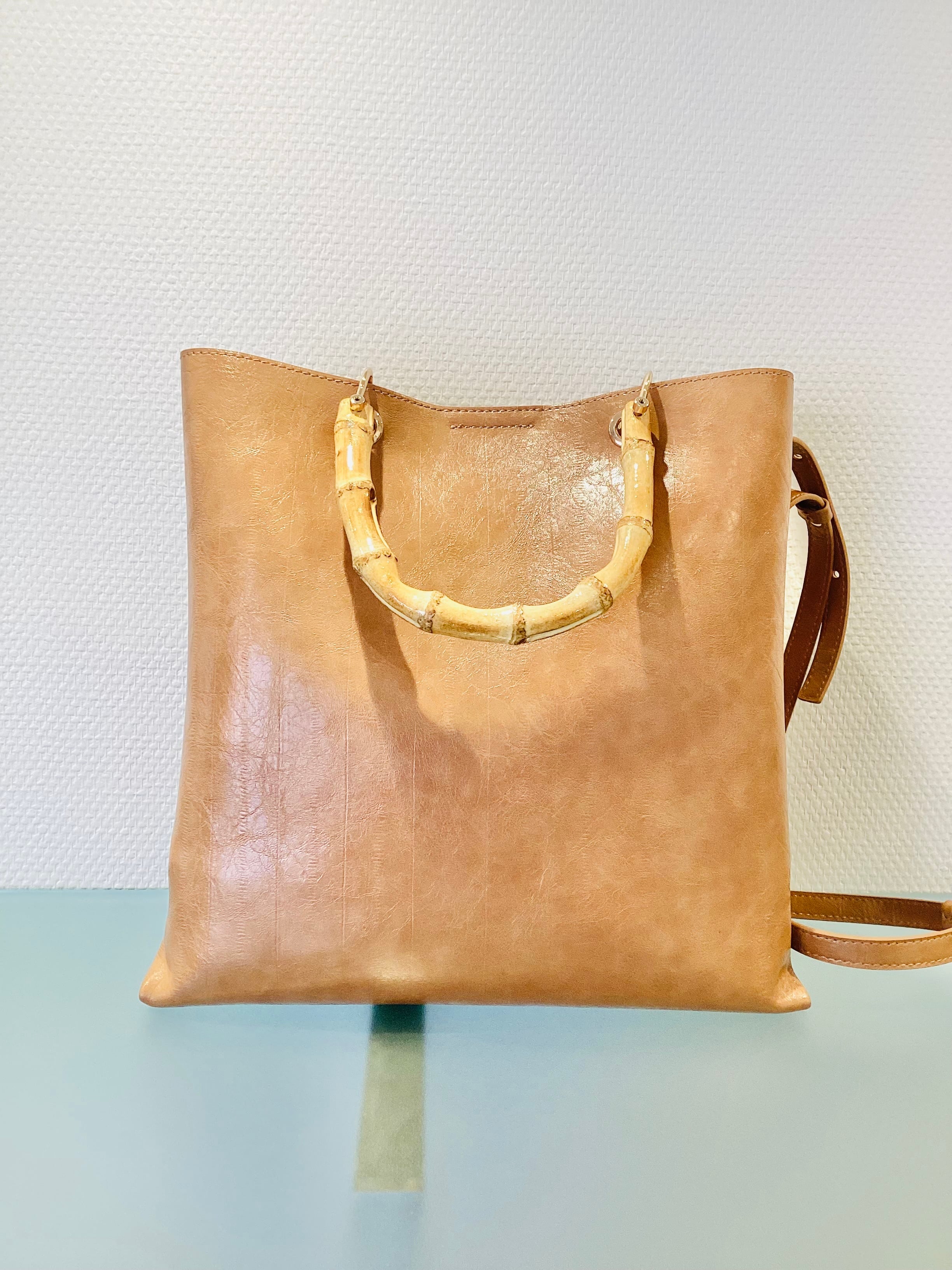 MARELLAらしい、絶妙なニュアンスカラーの配色。 バンブーのナチュラルな色味を引き立てつつ、どんなコーディネートにも馴染み かつ個性も光る都会的なバック♪ 素材も上質なエコレザーを使用、お天気も気にせず使えます。 機能面では、マチがしっかりと確保されており、タブレットやマイボトル ポーチなど、毎日の必需品収納可能! 見た目はコンパクトなのに収納優秀なヘビロテ必須のアイテムですよ^_−☆ 合成皮革 H29×W30×D11